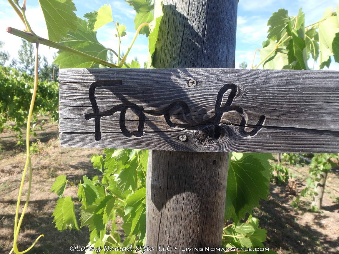 We told Bob and Marilyn thank you for all of their hospitality and left the building. We placed our bottles of wine in Ebony and decided to walk the vineyard. We were granted permission to do so by Bob. We never saw a vineyard up close and personal. We checked out the different types of grapes and other fruits they grew. And I had to examine his unique way to keep the birds out of the vineyard. I am not going to give away his secrets. But, he has no loss due to birds and it is a passive system that works and is ingenious. After meandering among the grapes for a while, we jumped into Ebony for our next stop.
