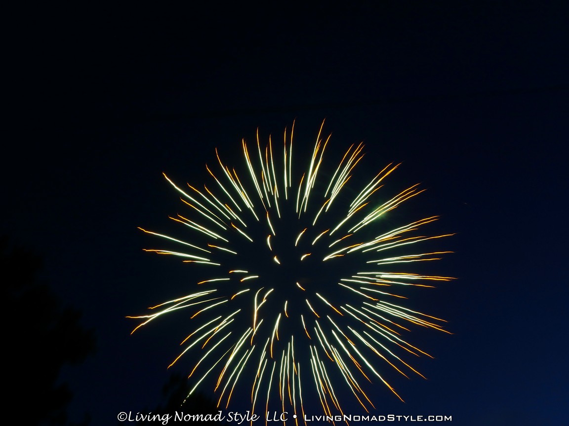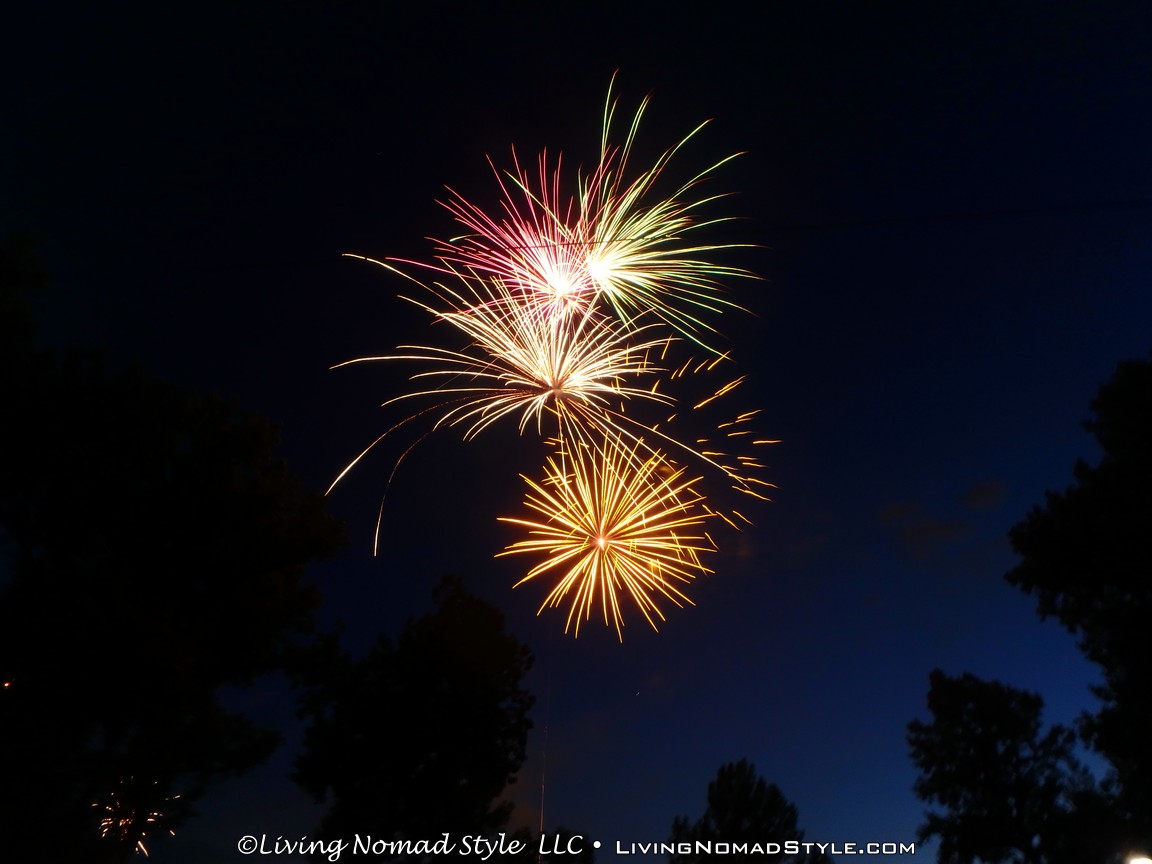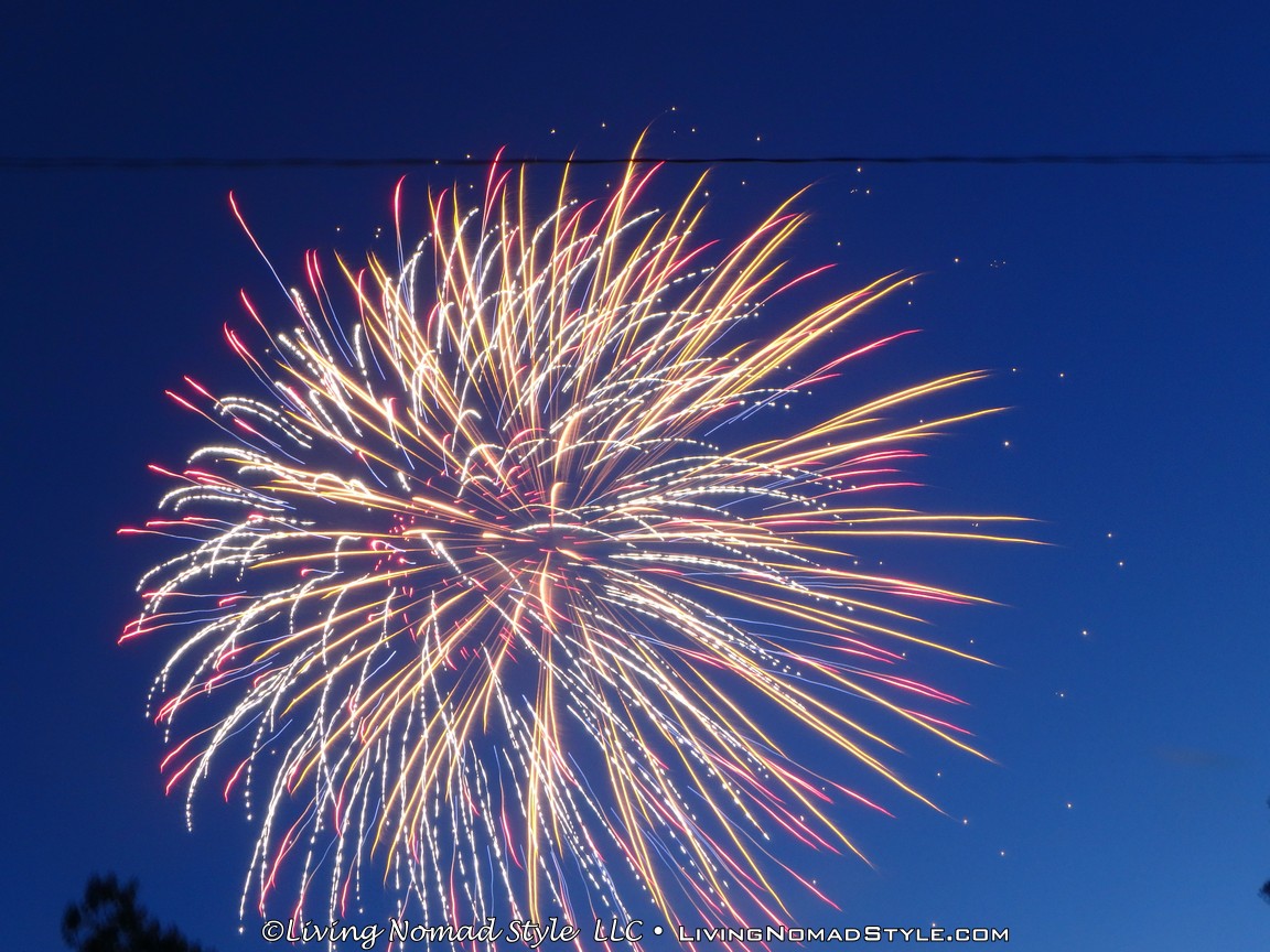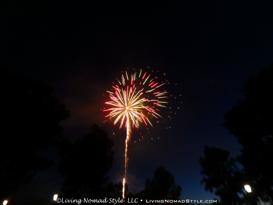 As we were packing up, the sprinklers in the park turned on. I am not sure if it was to make people leave or to ensure there were no ancillary fires. We were lucky enough that the area where we were did not get wet so we were able to pack up in peace. We parked a little distance from the park so we were able to jump in, no traffic and not blocked in. Within minutes we were home and ready to call it a night. What a great 2016 Independence Day celebration. We are thankful for our freedoms, especially our freedom to move around like we do as Nomads. Safe Travels.