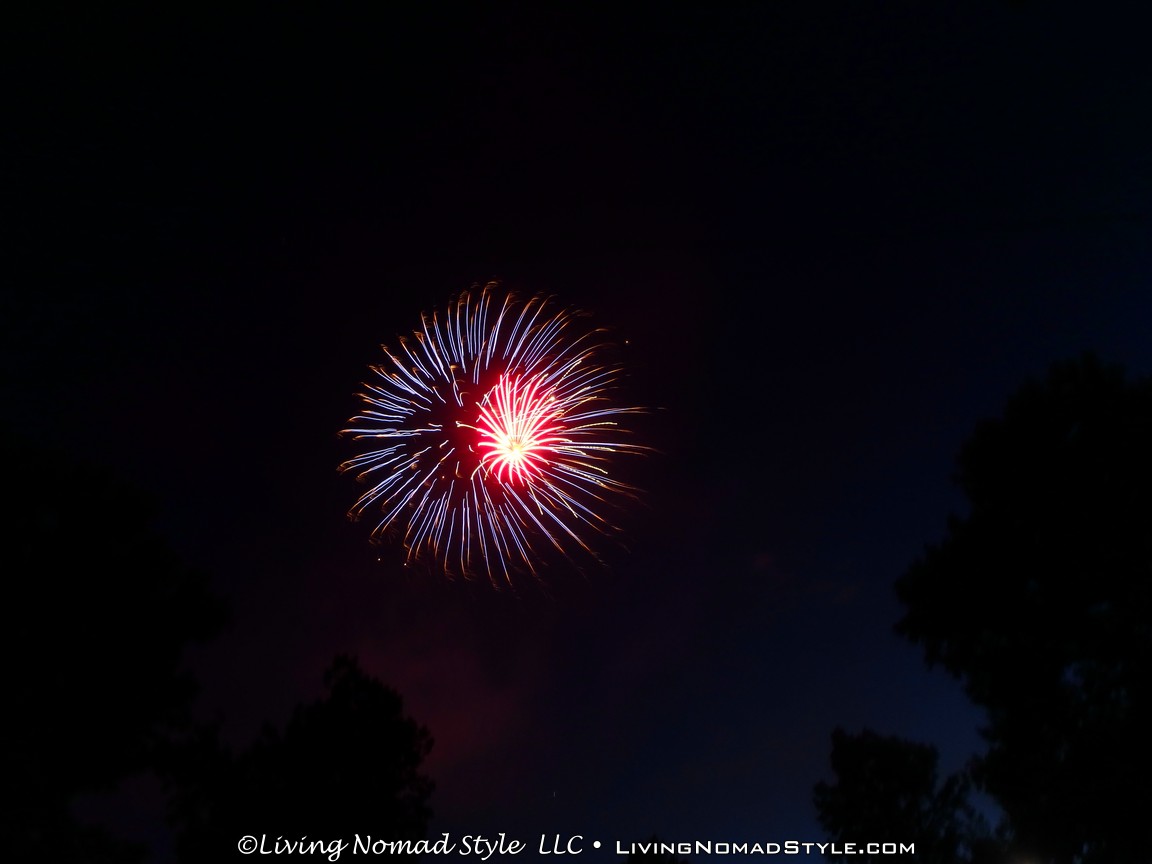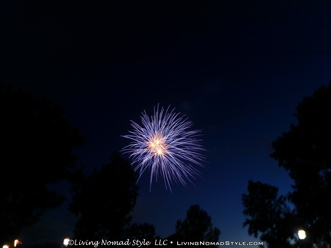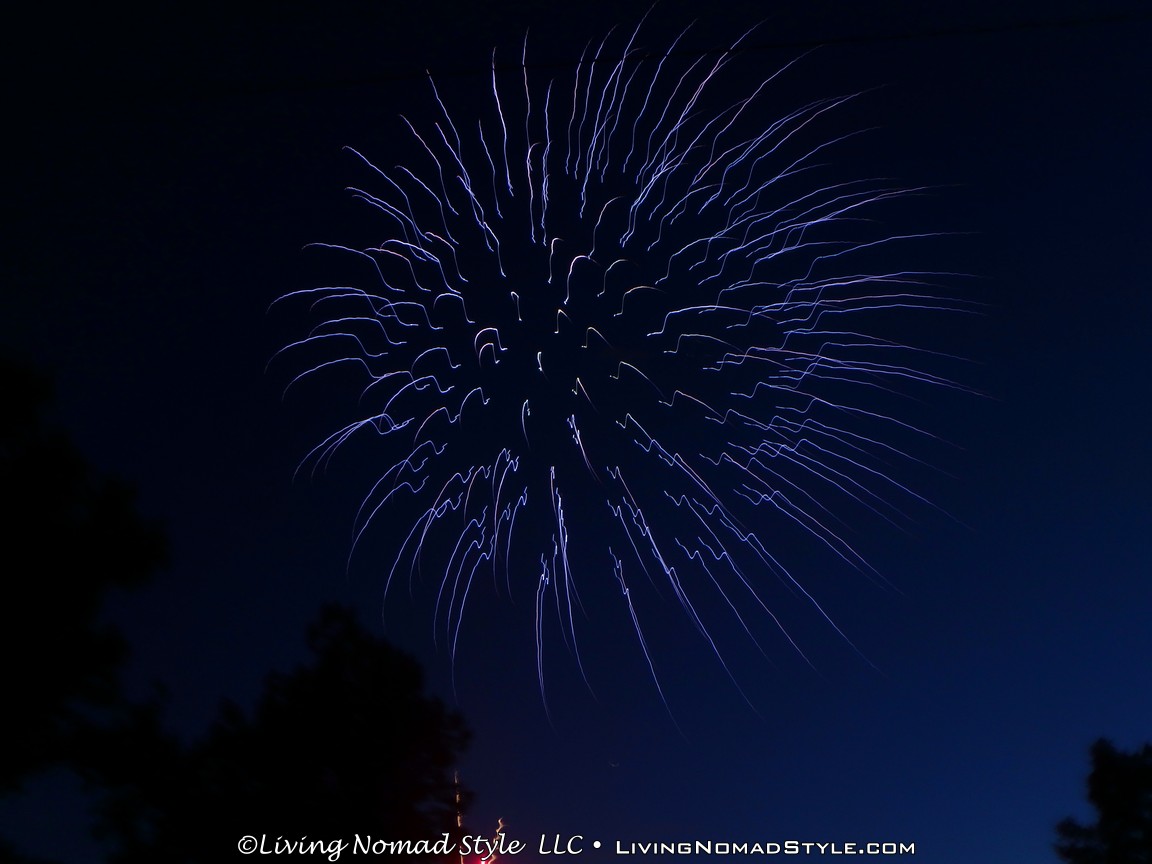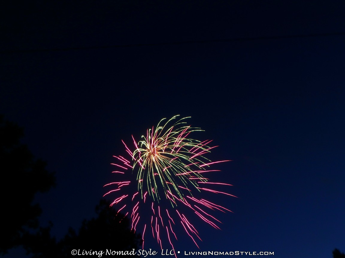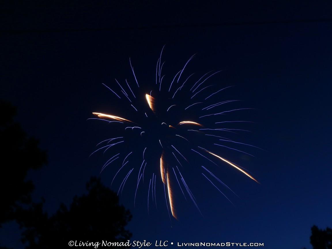 As we were packing up, the sprinklers in the park turned on. I am not sure if it was to make people leave or to ensure there were no ancillary fires. We were lucky enough that the area where we were did not get wet so we were able to pack up in peace. We parked a little distance from the park so we were able to jump in, no traffic and not blocked in. Within minutes we were home and ready to call it a night. What a great 2016 Independence Day celebration. We are thankful for our freedoms, especially our freedom to move around like we do as Nomads. Safe Travels.