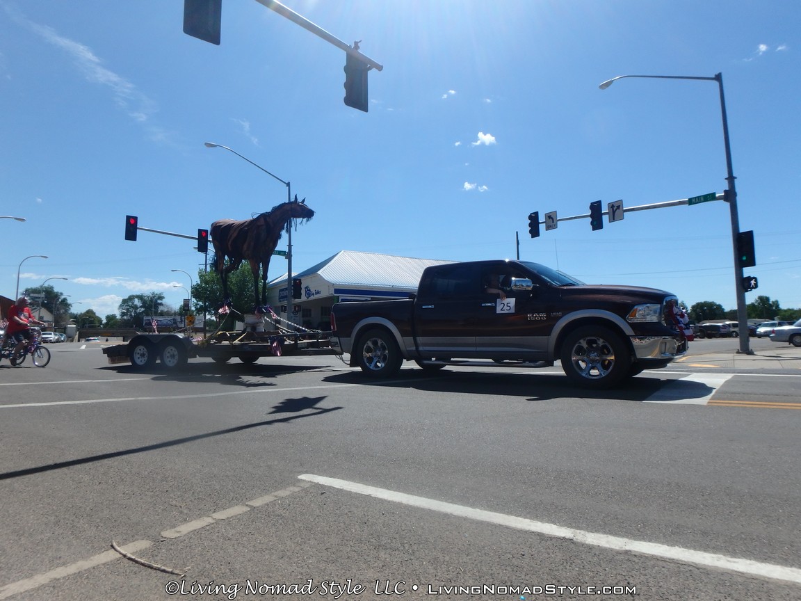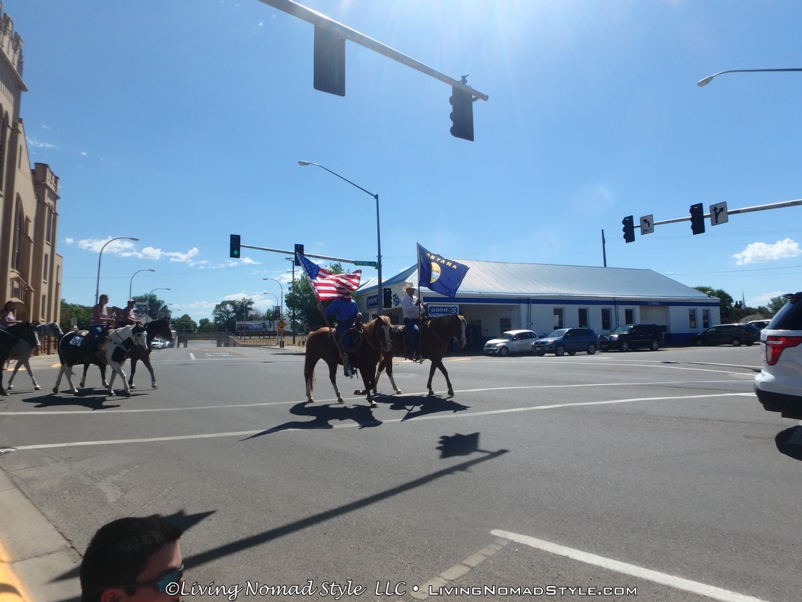 It seems a Montana parade has lots of horses and cowboys but no floats. When it came to an end we unanimously agreed that it was an enjoyable, good, hometown parade: very friendly, entertaining and not crowded. Once the parade concluded, we packed up our sidewalk campsite and headed back to home base.