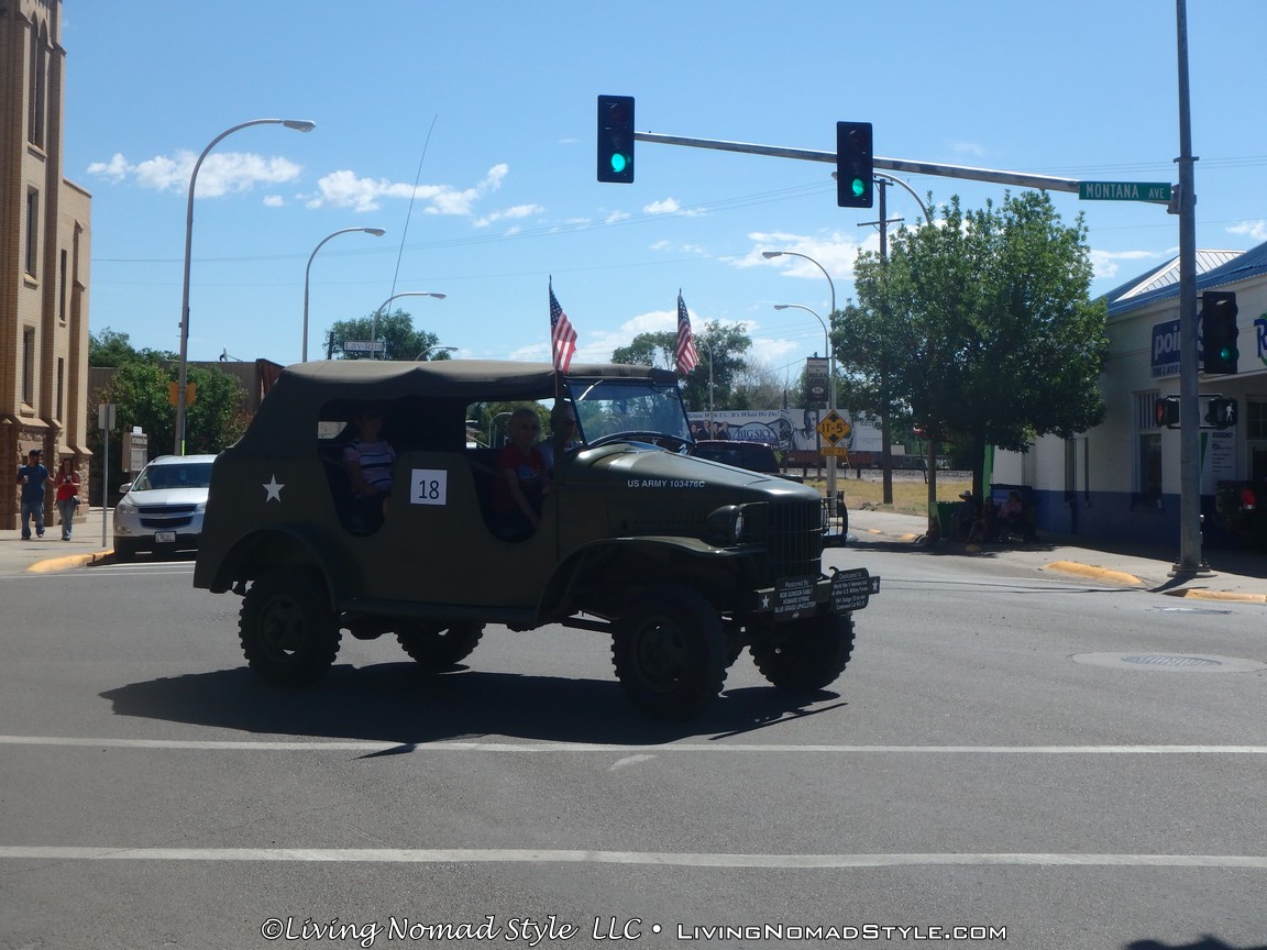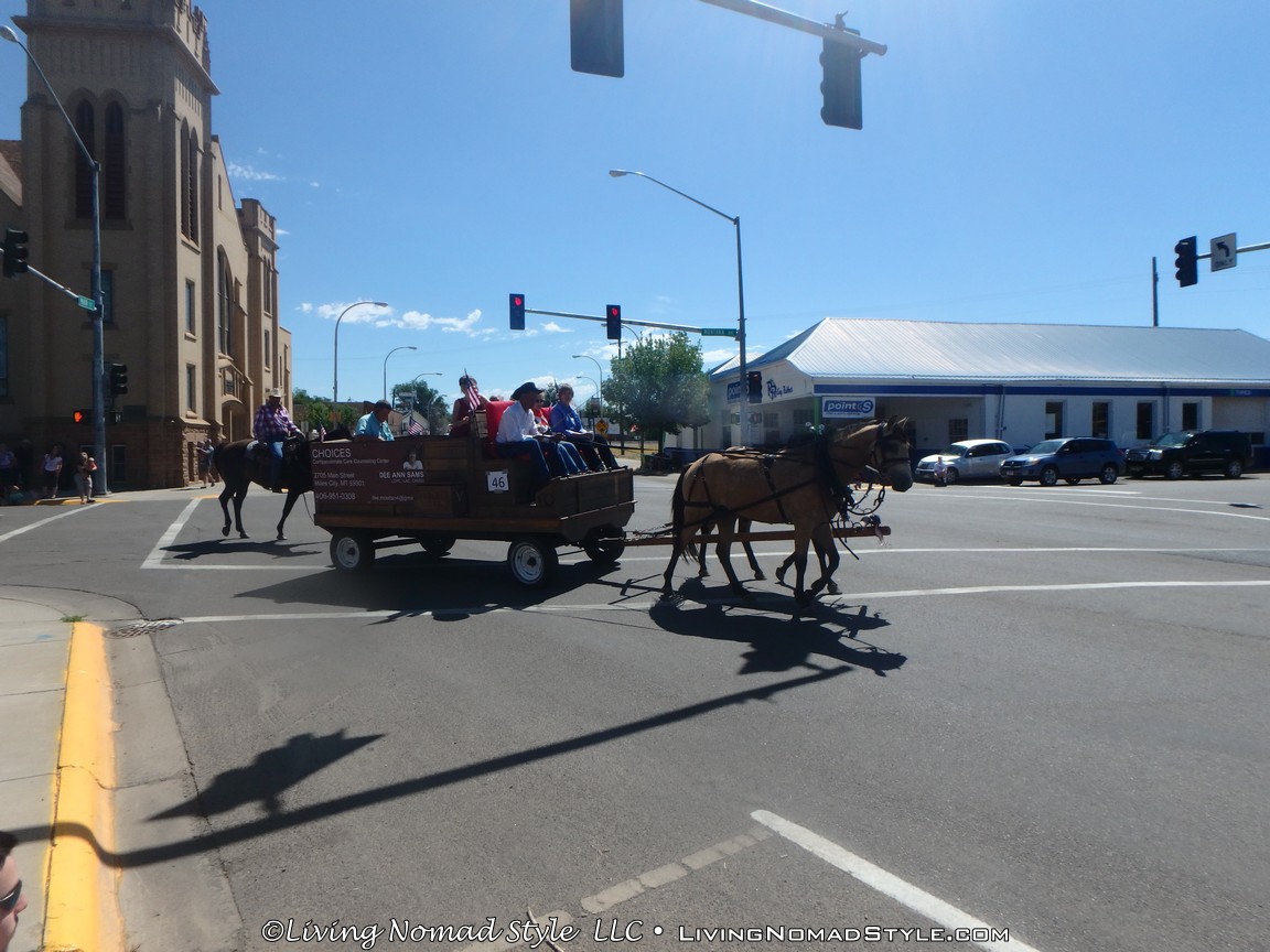 It began with a police vehicle clearing the way followed by people on horseback carrying the Montana and USA flags. They were followed by one wagon after another being pulled by horses. Throughout the parade there were old military vehicles, classic cars and trucks, all terrain vehicles, tractors (field and lawn sizes) and some people marching, tumbling or skating.