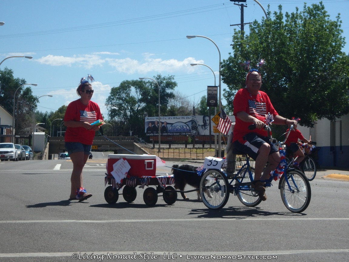 We got to the part of main street where the parade was supposed to come out, found an open area along the street, dropped a blanket on the sidewalk and setup camp. It wasn’t too long before the festivities began. This was not our first parade, obviously. However, it was our first Montana parade. And, we have noticed that each state has a variation on parades. So, we were anxious to see this version of a 4th of July parade.