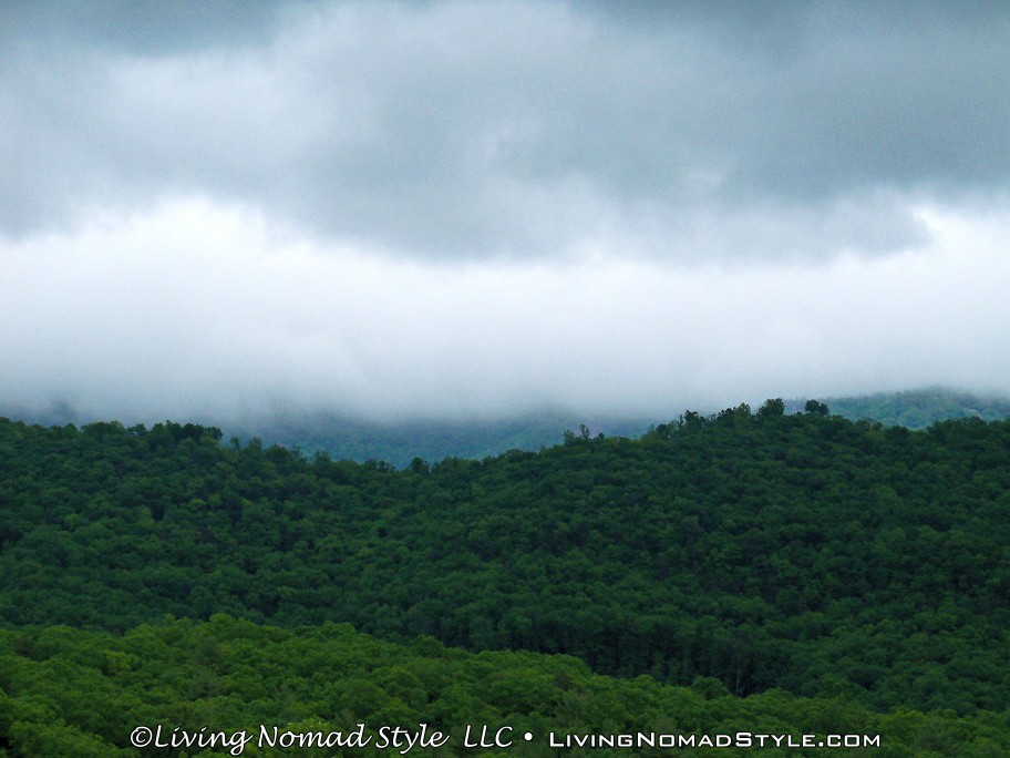 Staying in this place was a dream. The views from every slider, and window of the house were A-M-A-Z-I-N-G. We were either looking out at woods or mountains. Some days after a storm, we’d even have clouds surround us. It was stunning, and so relaxing. I felt like I was living in the trees. Not another house in sight; perfect seclusion. There were other neighbors around, just none that could be seen from the cabin. The area is mostly inhabited by weekenders or vacationers; not many full-timers.