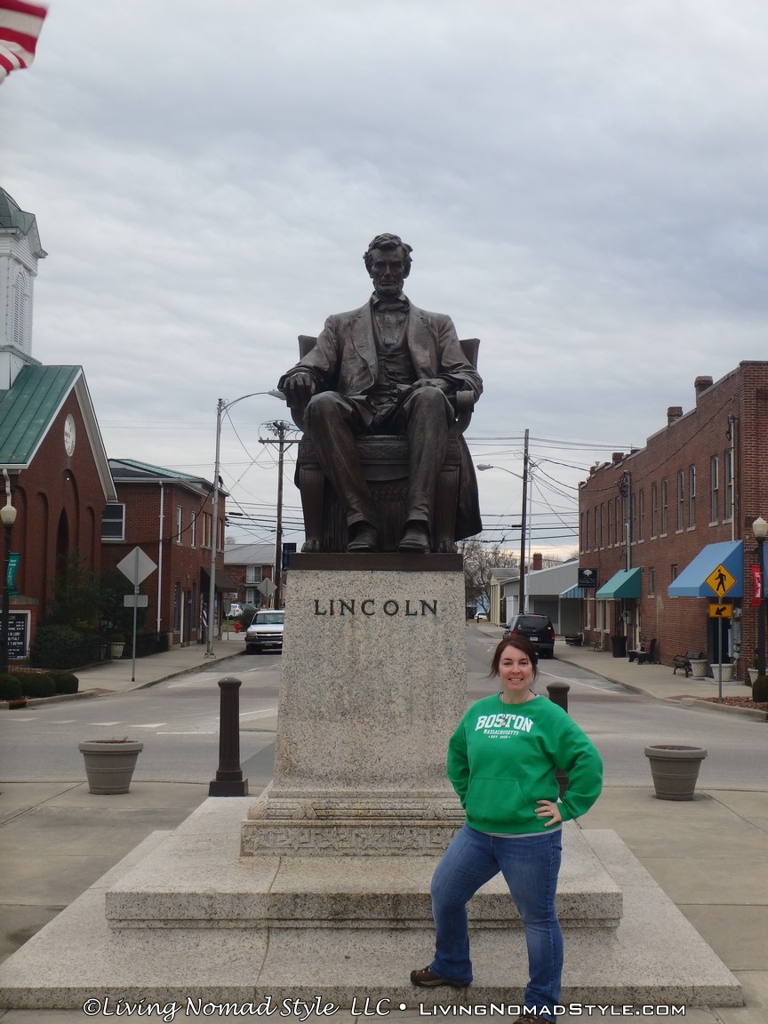 First, we went to his birth place in Hodgenville. There they have the Abraham Lincoln Birthplace National Historical Park. This park is free to visit, but would be worth leaving a small donation if you can. It’s a great park. There is a visitor center that plays a short video, and has a small museum to walk through. You can do it in 20-30 minutes. Also there is the actual birthplace memorial. The first memorial ever built for a US President, I might add. Notice, I didn’t say first monument……first memorial. This was done before the Jefferson Memorial in DC, and by the same guy (John Russell Pope). This stop was THE friendliest National Park Service stop I have EVER had. These guys were awesome. I wish I could remember the names of the volunteers that greeted us, and told us stories…..they were the sweetest, and kindest guys, and they seemed to REALLY love what they were doing. I do remember one of them looked like Mark Twain. I’m a Missouri girl…..Mark Twain has a piece of my heart, so that stood out to me.