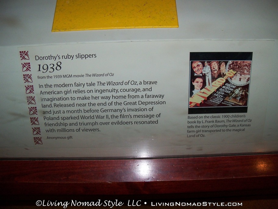 The American History Museum displays the history of the heritage of the United States. This delves into the areas of social, political, cultural, scientific and military history. Mama Nomad had one thing that she “HAD” to see. As soon as we entered the building, we bee lined straight for it. What could it be you ask? The ruby red slippers from The Wizard of Oz of course. They were Dorothy’s original shoes from the film. Mama Nomad saw them, admired them, was satisfied and we moved on.