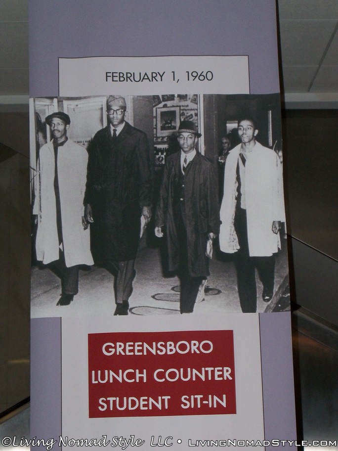 You pass by a lunch counter from F.W. Woolworth that was in Greensboro used during the sit-ins for the civil rights movement.