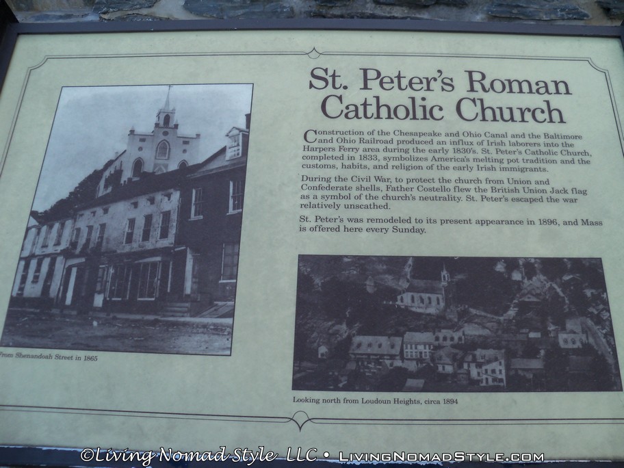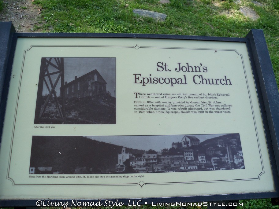 Leaving Jefferson Rock we continued toward Harpers Ferry Historic Town. Just before we got there, on the left, stood the remains of St. John’s Episcopal Church that was built in 1852. It was used as a Civil War barracks and hospital sustaining considerable damage. It was rebuilt after the war but finally abandoned in 1895.