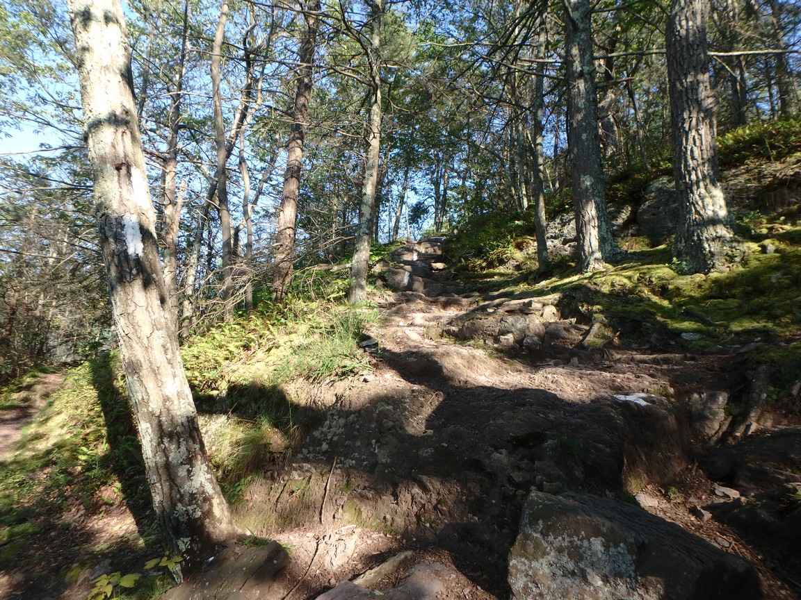 The Appalachian Trail gives you markers to know you are still on the trail. They are white, painted rectangles. If the traill is going to split off in one direction, you will see two rectangles; one in the middle on the bottom and another one on top offset to the side the trail is heading. We followed along many trail splits. At times we thought someone was playing a joke on us as far as the trail route was concerned. Why? The rectangles were painted on rocks that you had to climb over to keep going.