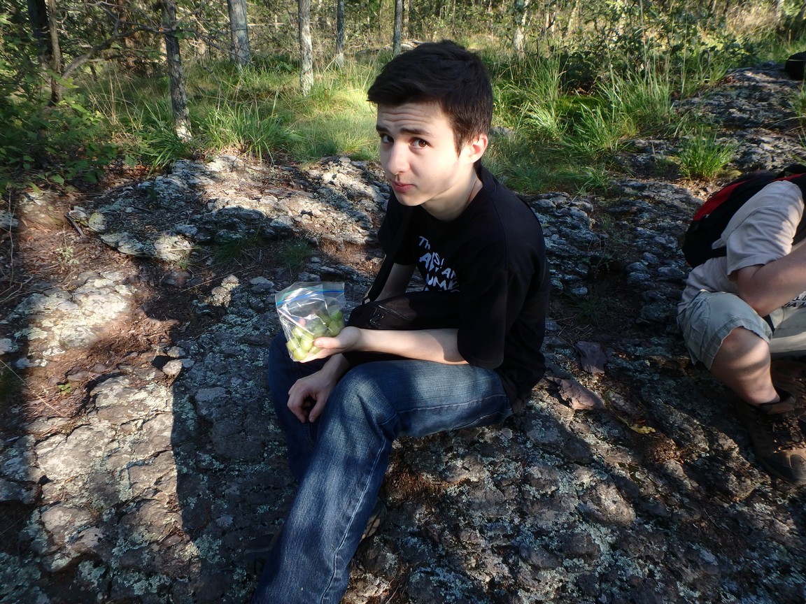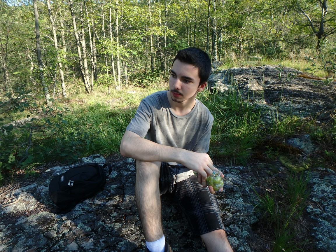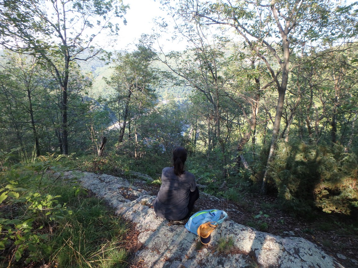 Along the way we saw some breathtaking views of the valley that the Delaware river ran through. We could see twists, turns, valleys and mountains all around both in Pennsylvania and New Jersey. We finally climbed to one of the highest points on the trail. We decided to sit, enjoy the scenery, eat some grapes, hydrate and recharge. After a quick snack and some much-needed water, we decided to head back.