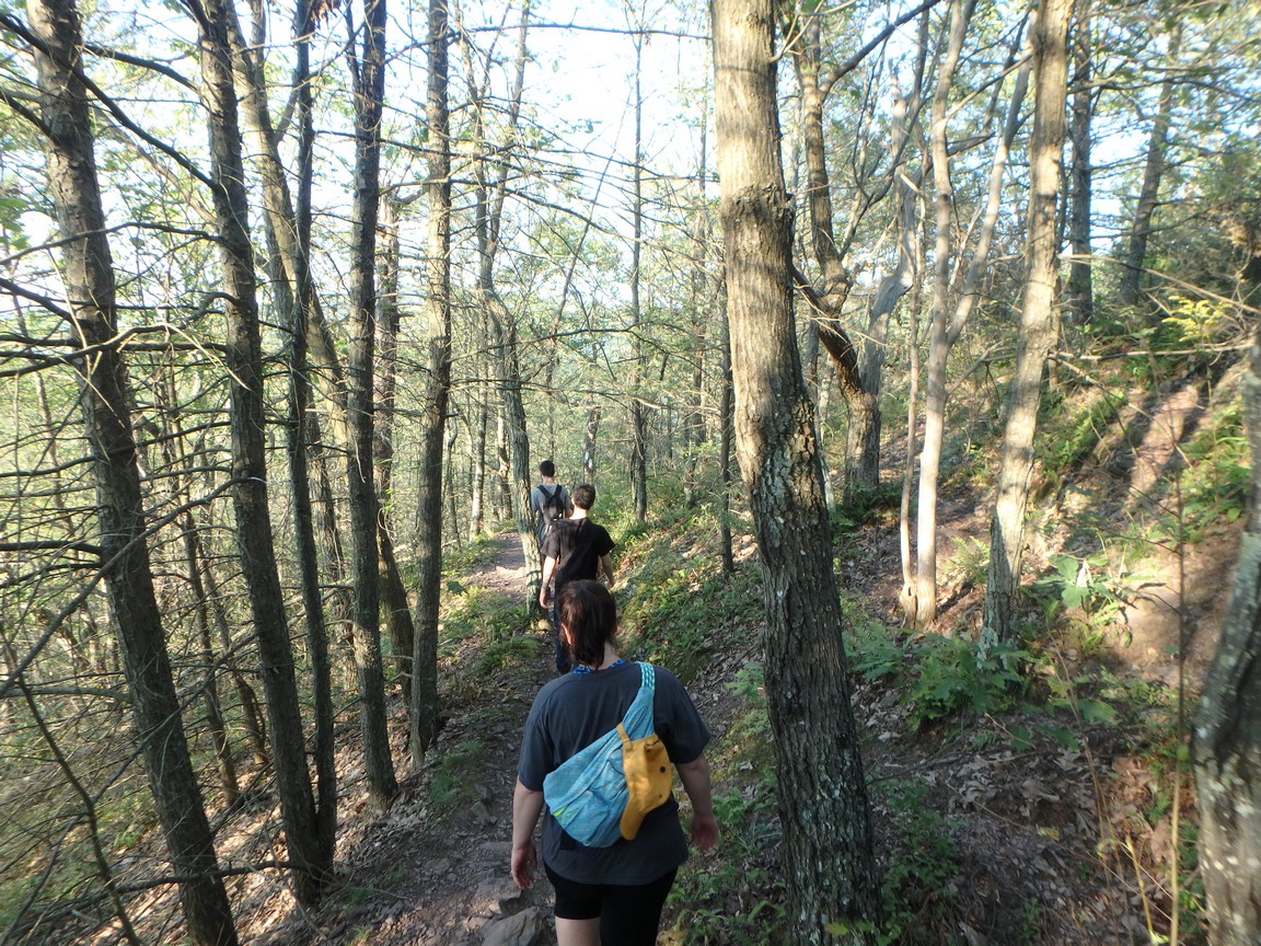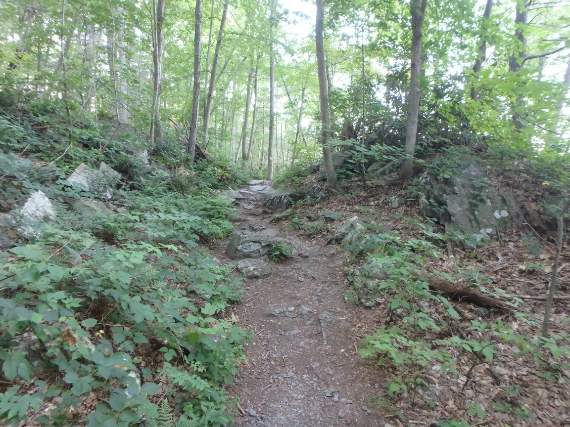 The path started out well-marked and kind of leisurely. Slowly but surely the pathway was no longer a simple pathway. We began to walk down natural stone steps and cross creeks on the tops of flat rocks. The Appalachian Trail in Harper’s Ferry was nothing like this. It went up and down and, at times, would wind like a snake. But, it was always a trail.