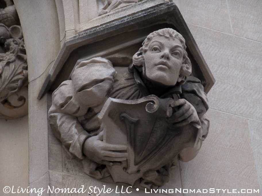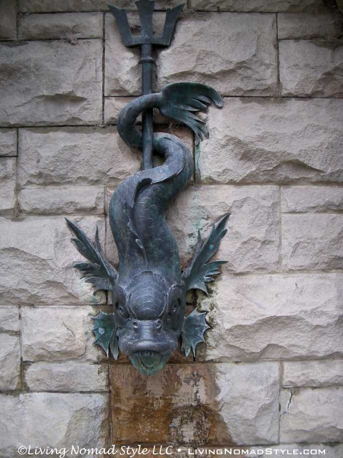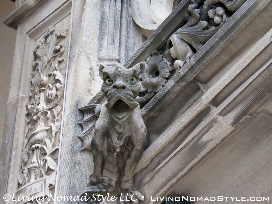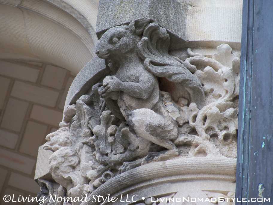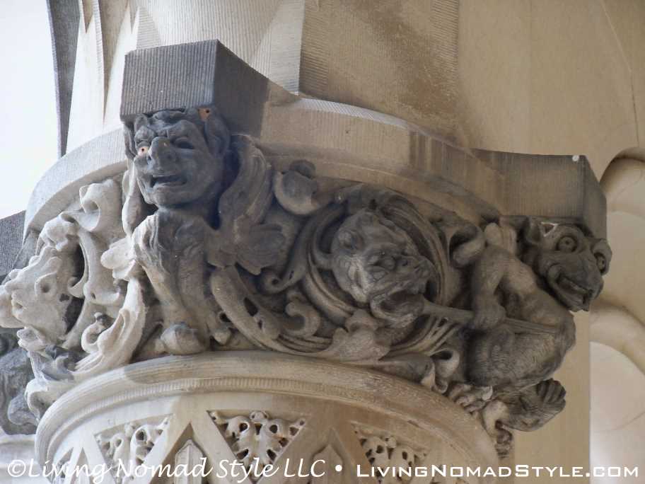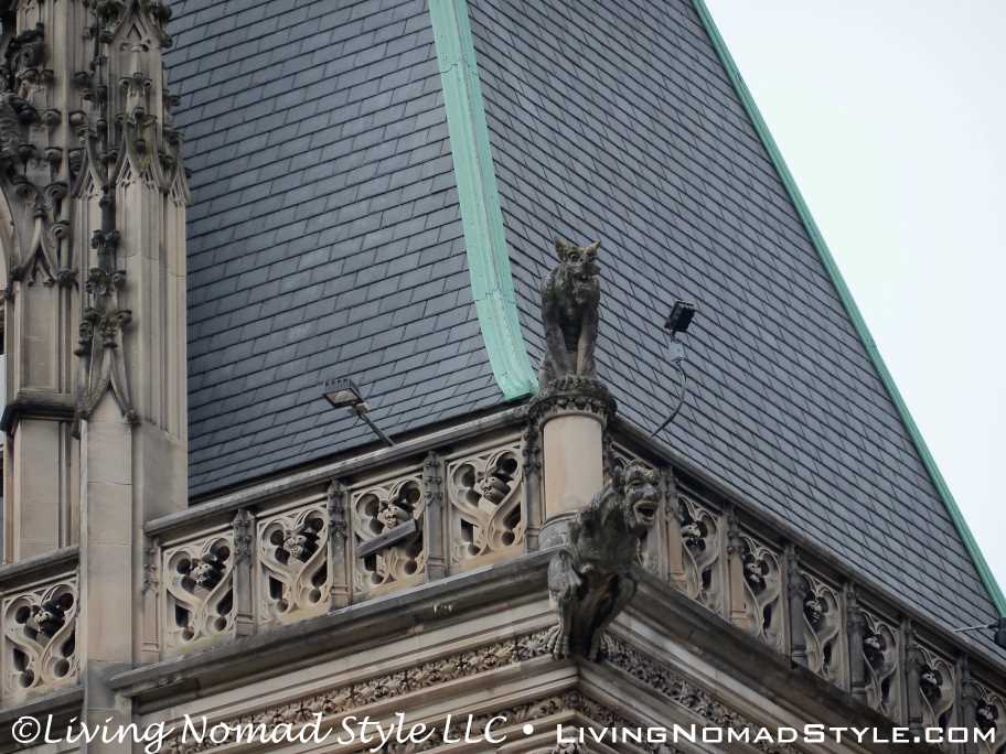 We began our exploration of the estate with the main house. We have many pictures of the outside. The exterior of the house has so many intricate details chiseled into it. It seems with every turn there is a V for Vanderbilt, some sort of face or creature and an abundance of acorns that adorn the outside.