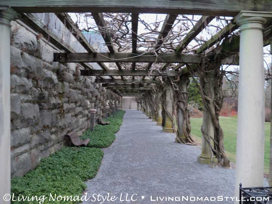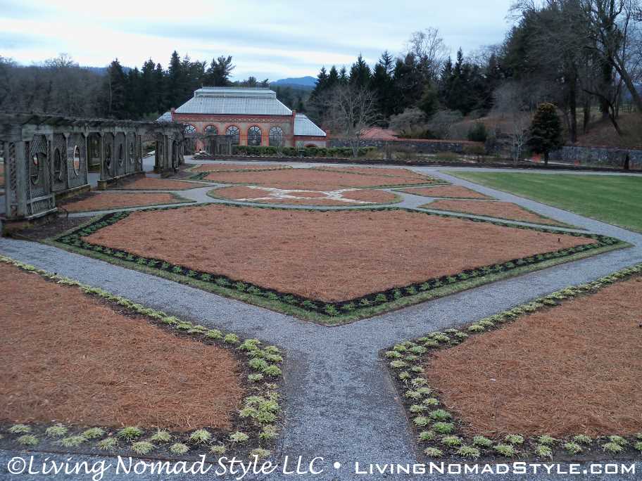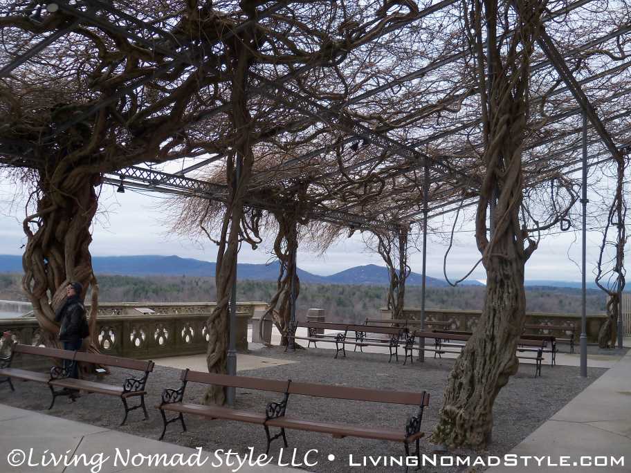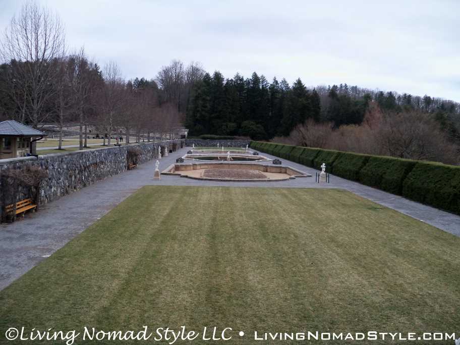 We left the stable area and journeyed to the rear of the home where the South Terraces, Italian Garden, Walled Garden, Conservatory, Bass Pond and other seasonal gardens are located. When you walk out onto the South Terraces, you run into Greek looking statues and you have a breath-taking view of the mountain range.