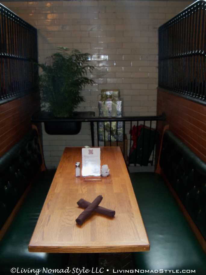 We concluded the self-guided tour in about 2 hours. Afterwards we exited the main house and took a left towards the area where the horses and carriages were kept. The area has been converted into shops and a restaurant. When you go into the restaurant, each stall that housed a horse was converted into a dining table. And the hay loft was converted into overflow seating.