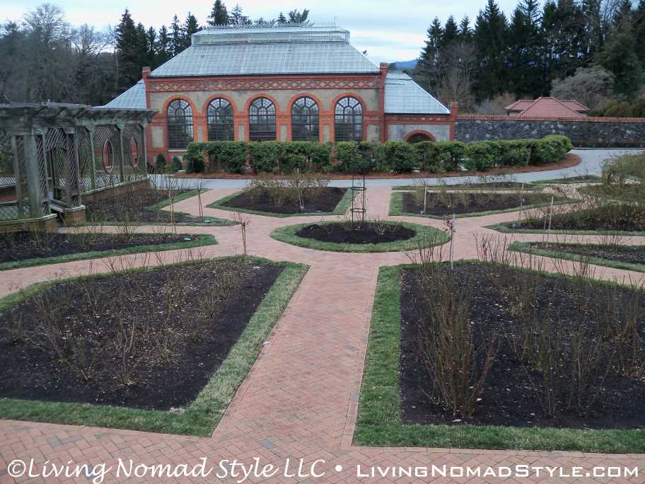 Walking down the back side of the South Terraces will lead you to the Walled Garden. This is a four-acre formal garden planted in the “bedding out” style that was popular in the 1800s. When you walk down its main 236 foot arbor walkway you will arrive at the Conservatory.