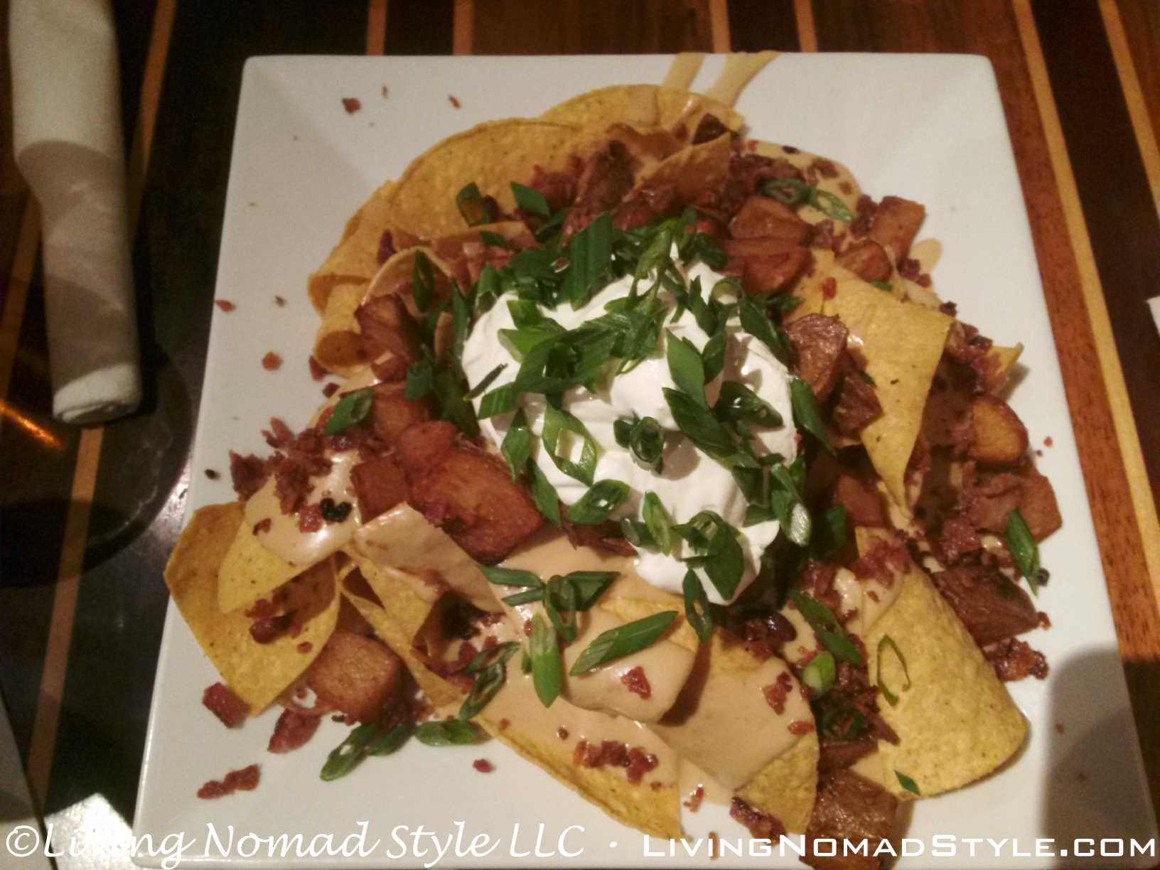We began our meal with an appetizer, as we commonly do. The one that caught our eye was Irish Nachos. Yes. That is what I said, “Irish Nachos.” Take two unrelated cultures and mix their tastes into one dish. They came with Tortilla chips, Guinness cheese, bacon, fried potatoes, sour cream and chives. Risky. But it paid off. They were delicious and more filling than we anticipated.