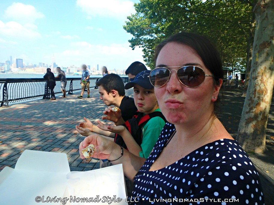After we got our pastries, we decided to walk the couple of blocks to Pier Park. I head read online that it is a great place to see the Manhattan skyline, and BOY OH BOY was it. Beautiful spot. We took a seat, enjoyed our sweets, and marveled at Manhattan. The park is lovely, and there are plenty of places to stroll along the water, and enjoy the scenery.