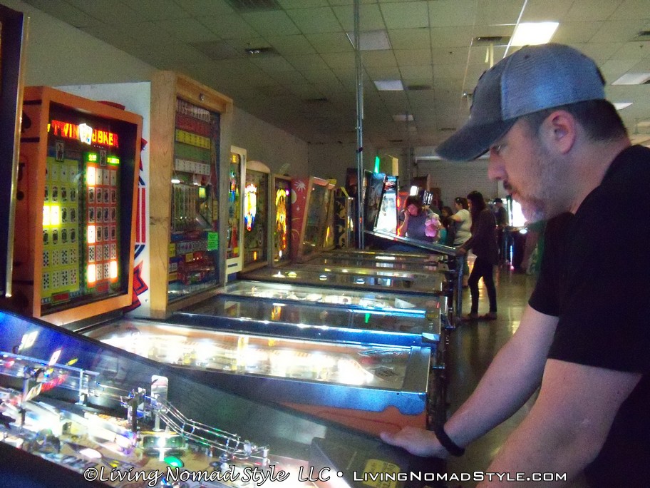 As many of you are fully aware, we, Nomads, like to do things that are off the beaten path as well as enjoy some of the more common tourist type attractions. My celebration in Las Vegas was no different. We got into Las Vegas in the early afternoon and we headed straight for the casino. Joking. We headed straight for the Las Vegas Pinball Hall of Fame (1610 E Tropicana Ave, Las Vegas, NV 89119), which was founded in 2006. It has no entrance fee and has a whole building full of playable pinball and some retro video games. There are no tokens. The entire place is quarter driven. Some of the older pinball machines (which we played one from the 1940’s) are one quarter. Some of the pinball machines up to around the 1980’s were 50 cents. And the newer ones were $1 per play.