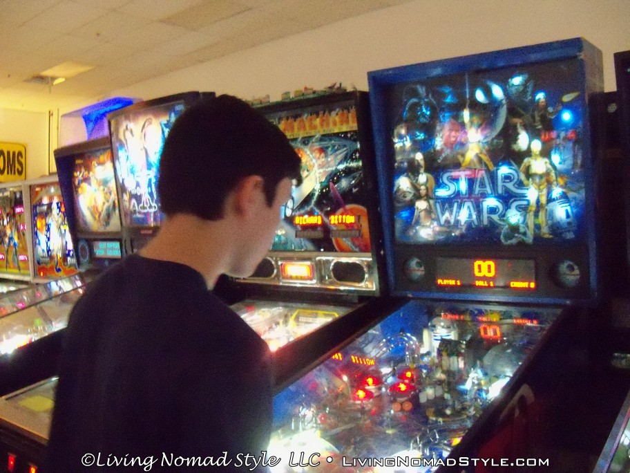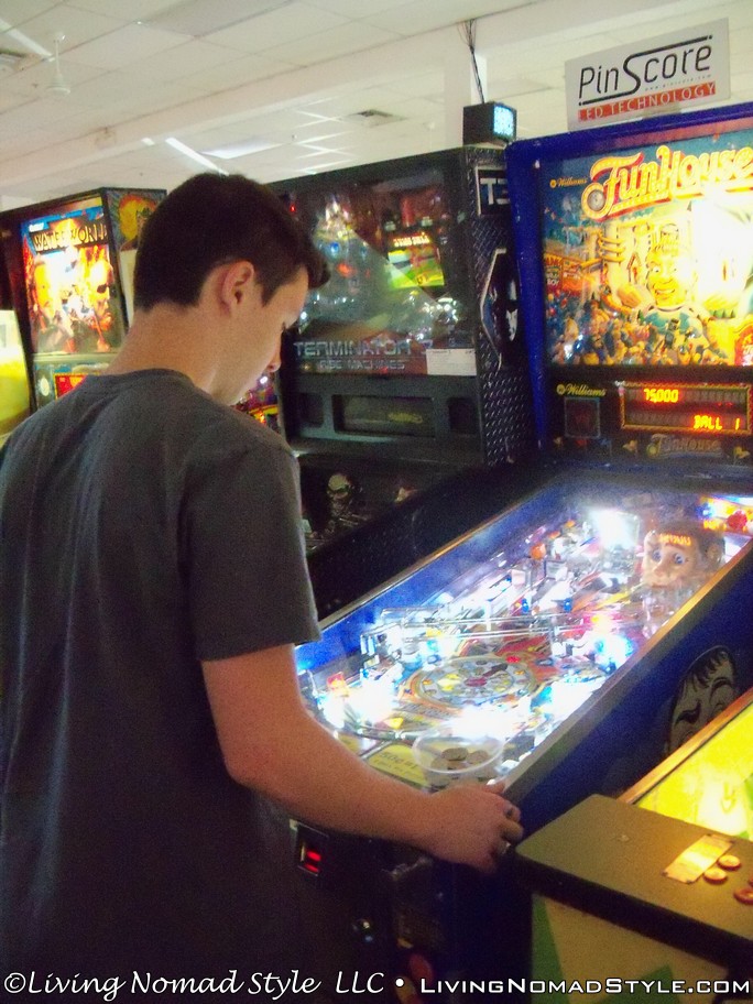 It reminded me of the arcades when I was a kid. You know, when Mrs. Pac-Man, Donkey Kong and Tron were popular. I know. Dating myself there. Don’t care. They are classics. Fun then and fun now. I even played Mrs. Pac-Man and got the high score! With $10 in quarters each, we were there for hours. It was a lot of fun having my Nomad Boys play on games that I did when I was a kid and it was even more fun to see that they were enjoying themselves. Mama Nomad did her fair share of flipping, bumping and tilting pinball machines. To those who are nostalgic about old video games and pinball machines, this place needs to be on your list.