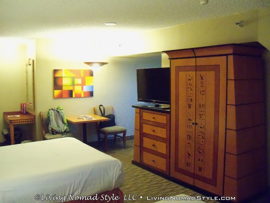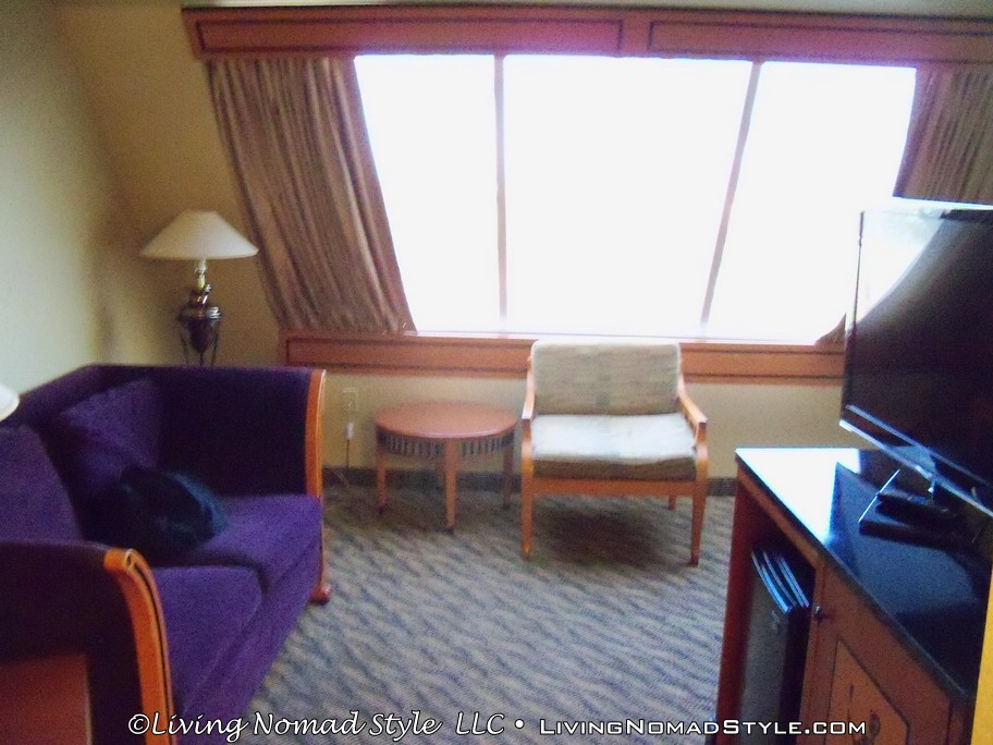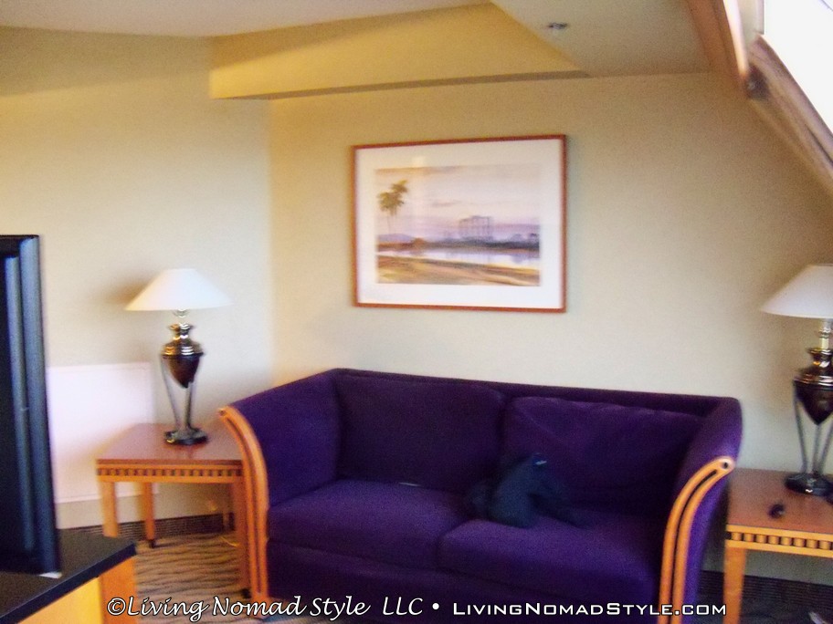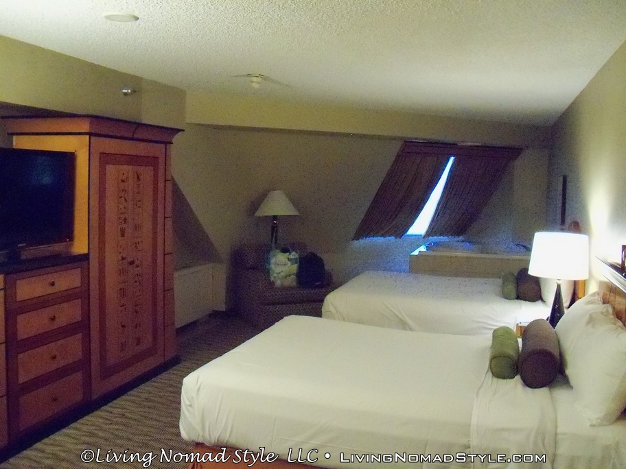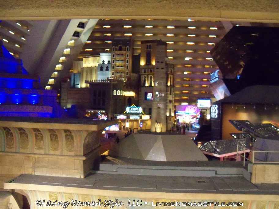 After we left the Las Vegas Pinball Hall of Fame, we continued my Celebration in Las Vegas by going to our hotel to drop all of our stuff off. the night before we headed out, I actually did some research, identified where we were going to stay and put my negotiation hat on. The price for a suite, with resort tax and an additional fee for a roll away bed, was over $215 on their website. So I called and by the end of the conversation, we landed a 2 room suite with all of the amenities for $165.78. Not too bad. Not too bad at all. Which hotel? Check out the pix. You’ll easily recognize it by its shape.