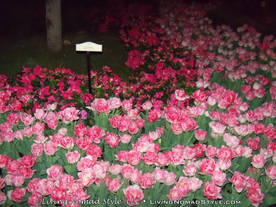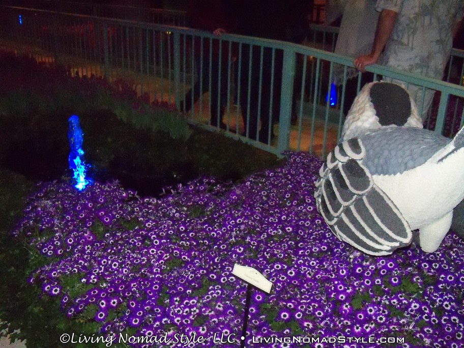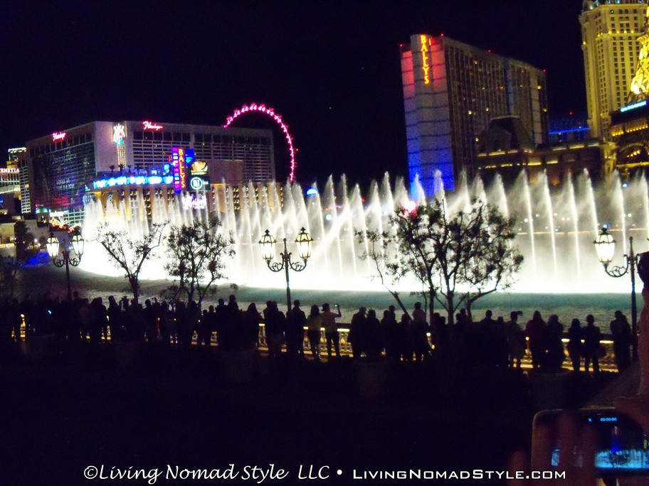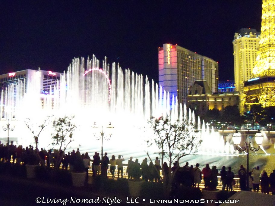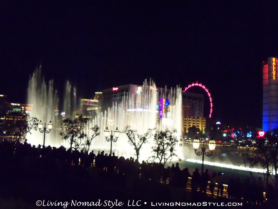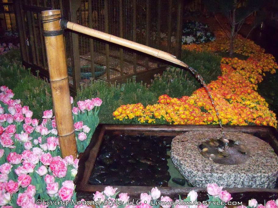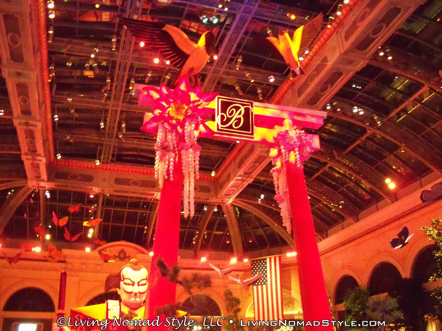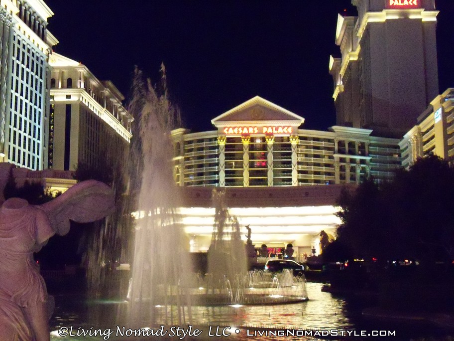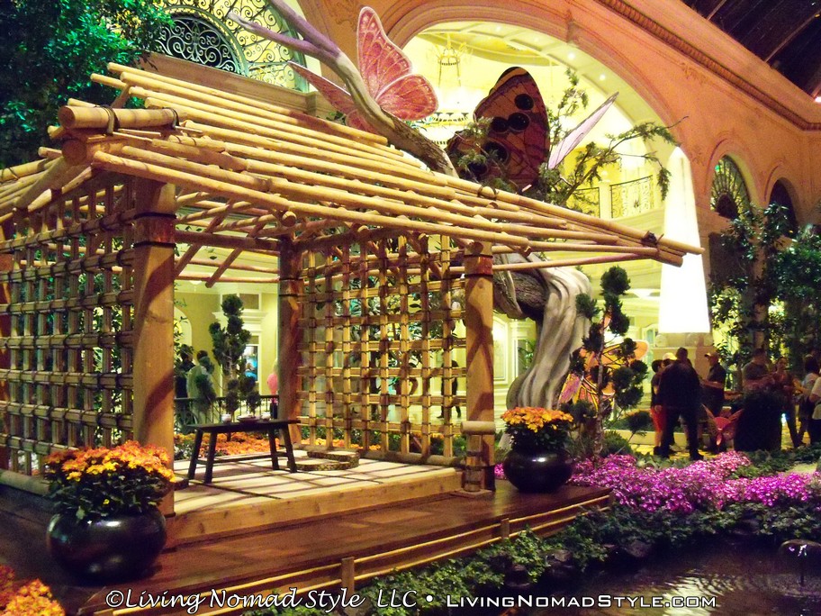Just down the road was Caesar’s Palace. This was decorated with buildings, statues and water works like Ancient Rome. We continued on down until we got to the Bellagio. They have a water fountain show, in front of the hotel, every 15 minutes in the evening. They have lights, the water dances and some smoke effects, all to music. It was quite a show to see in person. Then we went into the Bellagio where they had an indoor Japanese Themed flower garden.