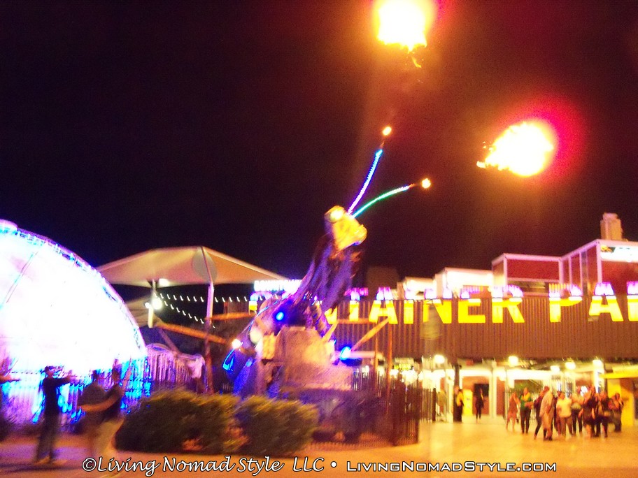 Afterwards, we walked back to get Ebony and headed towards the Fremont District. This is an up and coming attractive area north of the strip and the row of wedding chapels. Lots of other attractions, hotels, casinos and more. We saw a statue of a praying mantis shoot fire out of its antennae and a restaurant that advertised all who are over 350 pounds eat free! Bizarre yet entertaining all at the same time.