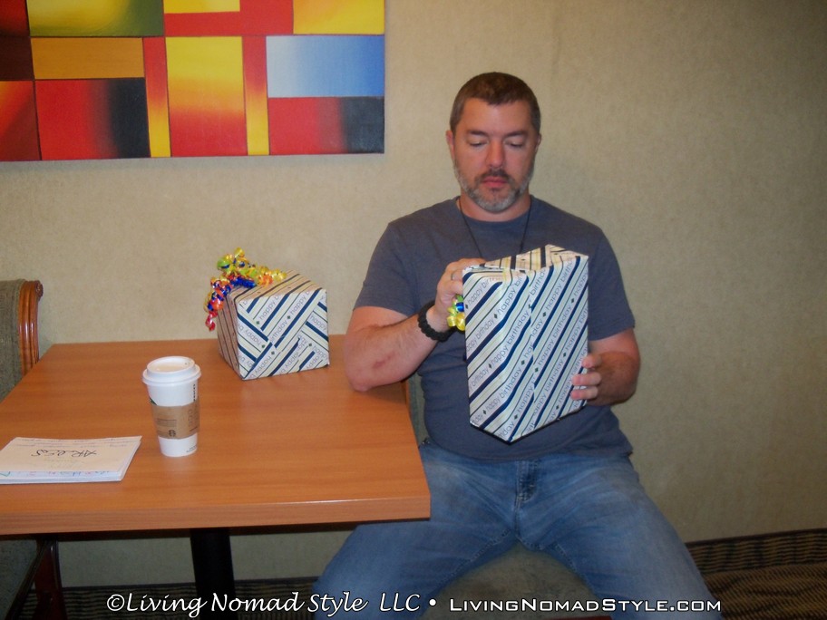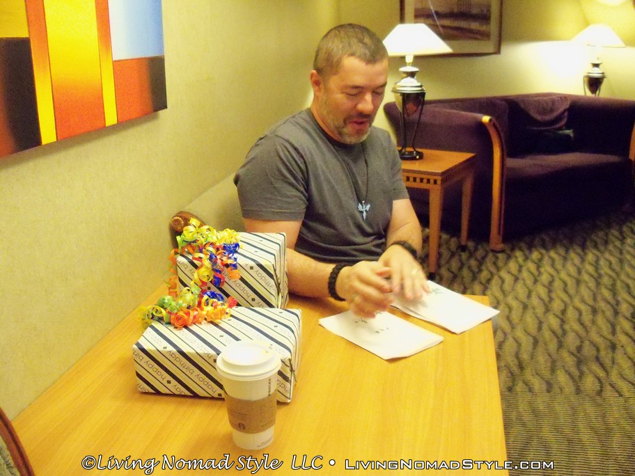We woke up the next morning and Mama Nomad and I went down to the casino to play a game we both like called Jackpot Party. She broke even and cashed out. The birthday luck must have been with me because I started with $20 and within a few minutes, I had $50! I cashed out and we left. We went back to the room and I opened the presents they got for me and read the cards they handmade. That effort is very special to me. Afterwards, we grabbed our stuff, checked out and loaded up the car. We did not leave yet.