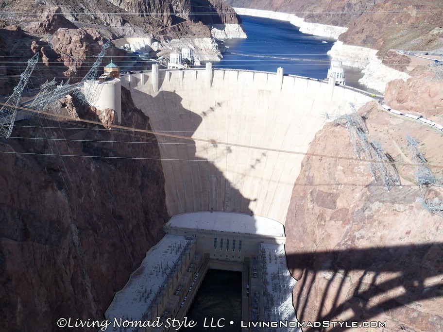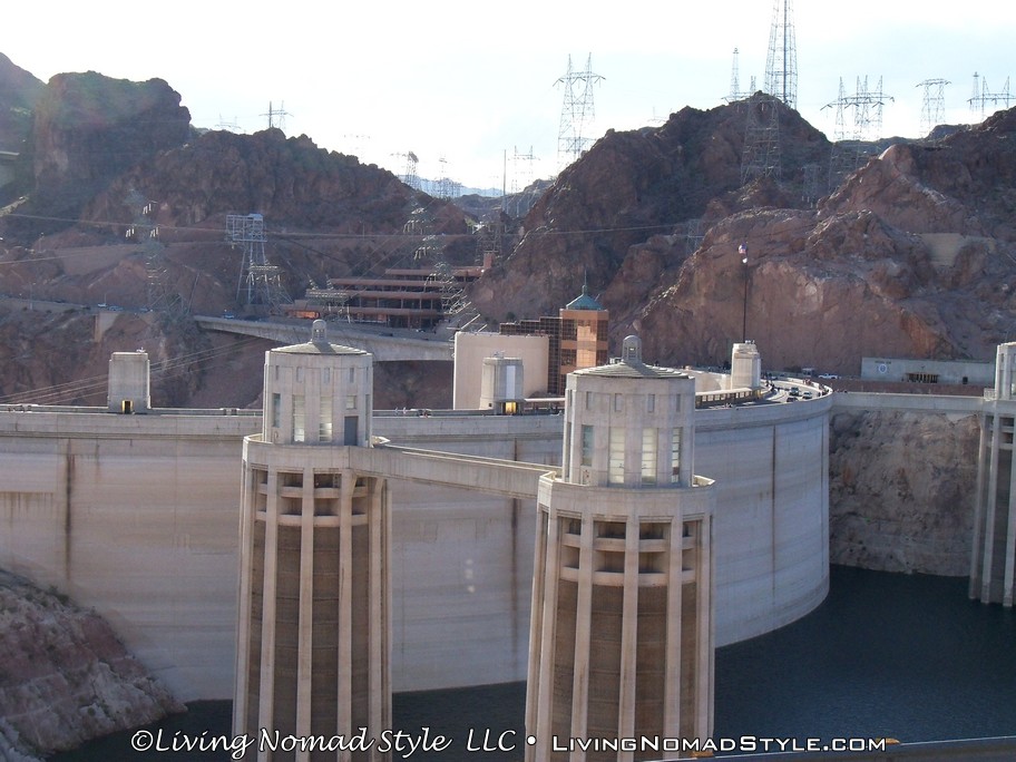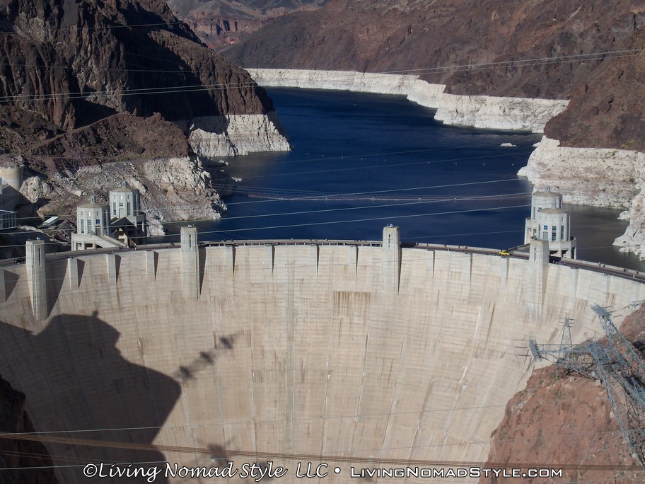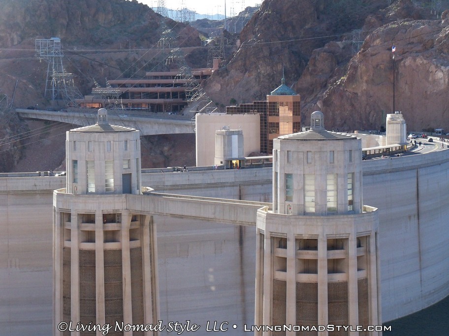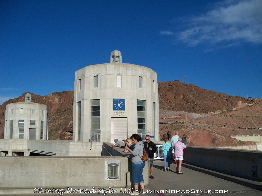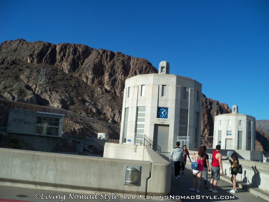 After marveling at the dam, we walked back to Ebony and continued onward to the dam itself. We decided to drive across it and get an “up close and personal” view of the dam. It is beautifully constructed with a copper building on top of it and a couple of clock towers for Nevada and Arizona times. Another fun fact, there are actually Hoover Dam Police. They are not police from a neighboring city. They are actually called Hoover Dam Police.