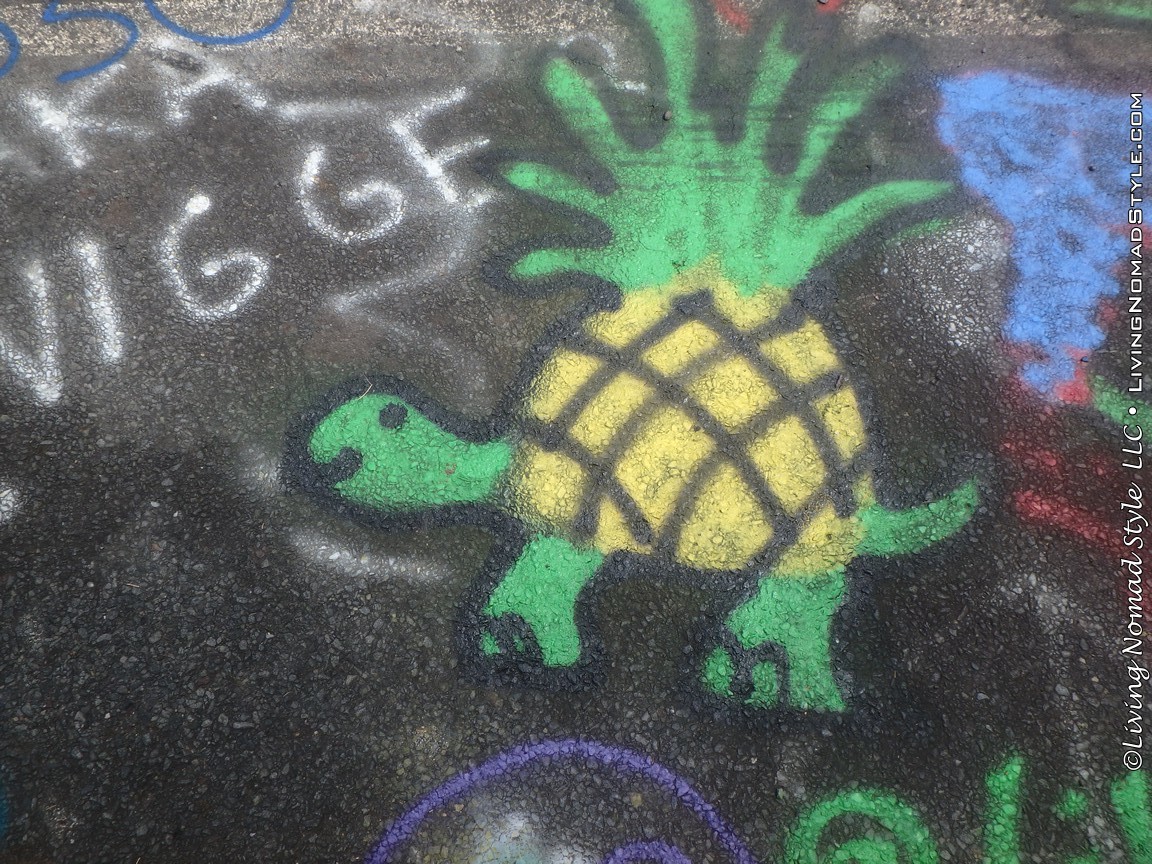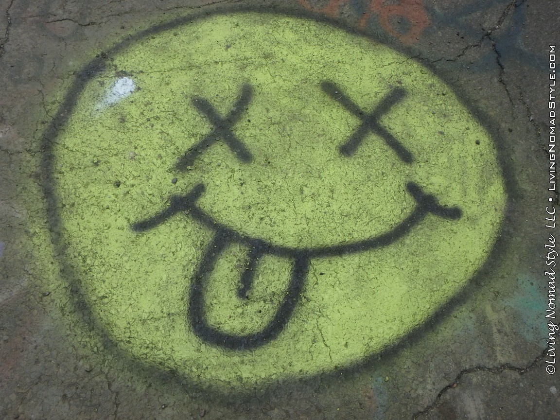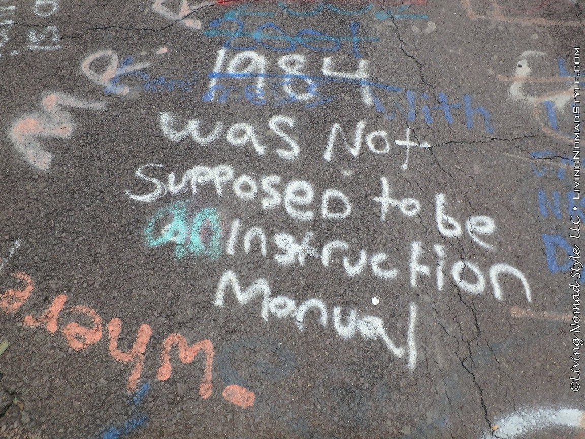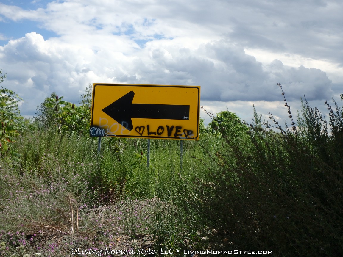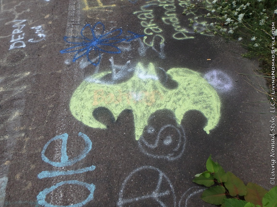 One section of the highway was closed off and traffic rerouted because the fires came up through the road and destroyed parts of it. Now, this stretch is known as Graffiti Highway. Why? Because, sometime after it was closed off, graffiti began to appear on it. Now, people come from far and wide to see it and others to participate in decorating it. It is on the south side of the town as you are heading to Ashland. You can pull over and park right by the north end of it. It has a graffitied yellow directional sign with a black arrow. You can’t miss it. You will see cars parked on both sides of the road. And, while you walk the abandoned piece of highway, be careful as ATVs, motorcycles and even trucks still drive down it. Take a look at some of what we found.