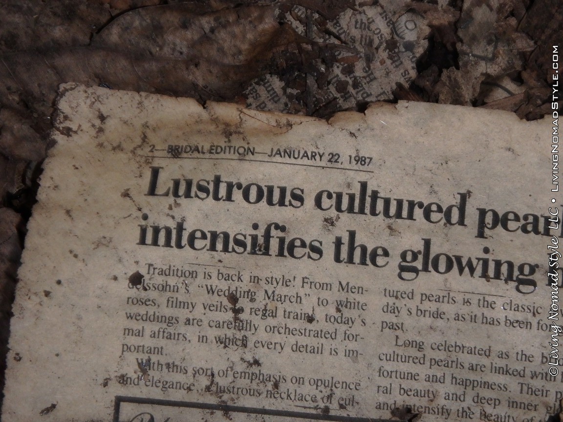 On the way back we noticed a structure behind a lot of brush that we missed as we trekked inward. The house had been burned. I am not sure if it was because of the coal mine fires or if it was because of the condemning of the city and the burning of buildings. It was a brick house and the brick remained, as did some of the roof. The interior was burned. That is, except for a newspaper from 1987. Weird.