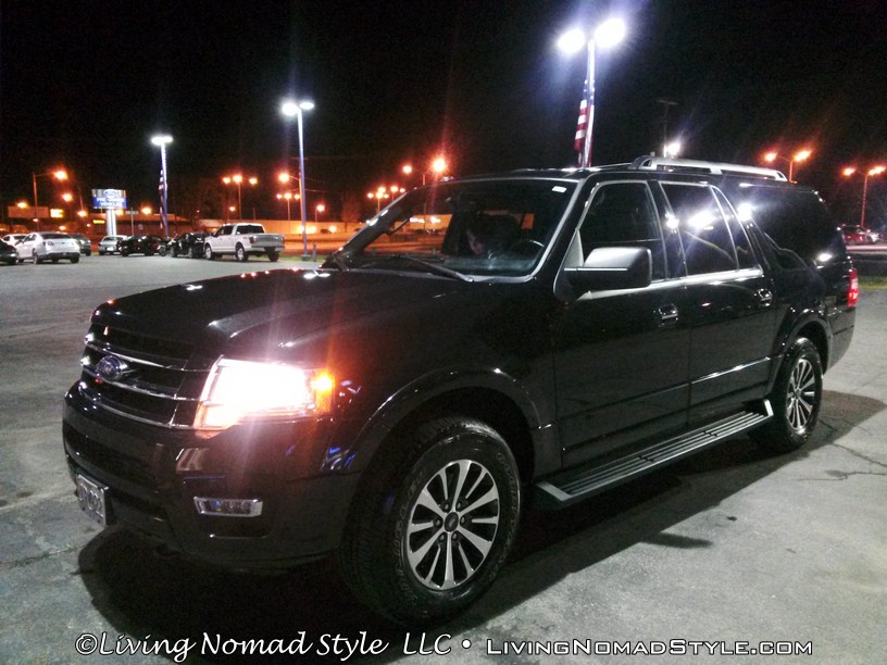 That evening we drive away with a 2015 Ford Expedition XLT EL 4×4. This was the extended edition Expedition that could easily sit 8 comfortably. It had a complete towing package that included automatic adjusting in the transmission for towing as well as a connection for a trailer braking system. We can switch from automatic transmission to manual with the touch of a button. This vehicle has a surround sound entertainment system and a voice activated computer system. On top of that, each of our boys…as well as Mama Nomad and me, can stretch our legs and have plenty of room.