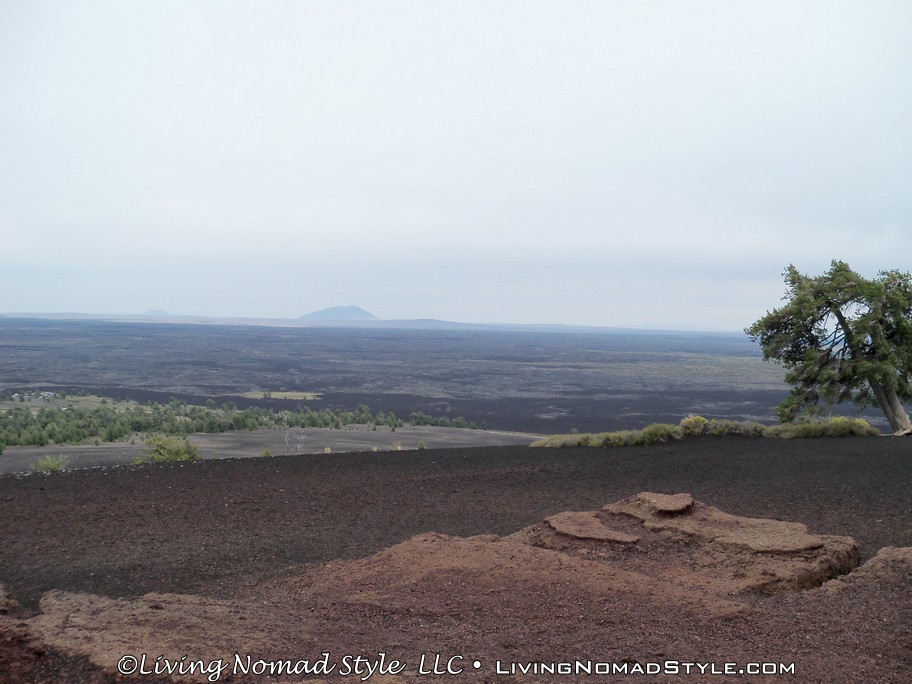 We bypassed the first trail, North Crater Trail, since it was about 2 miles in one direction and did not loop. We wanted to ensure we were able to see as much of the park as possible, so we stayed on Craters Loop Road until we came to Devil’s Orchard, which was named by a visiting minister who said this was a garden fit for the Devil himself. Throughout this area you learn about the types of plants and trees that can grow in this environment, like Limber Pine and Rabbitbrush. You also learn about the lichens that are on the lava rocks. These brightly colored organisms break the rocks down into soil.