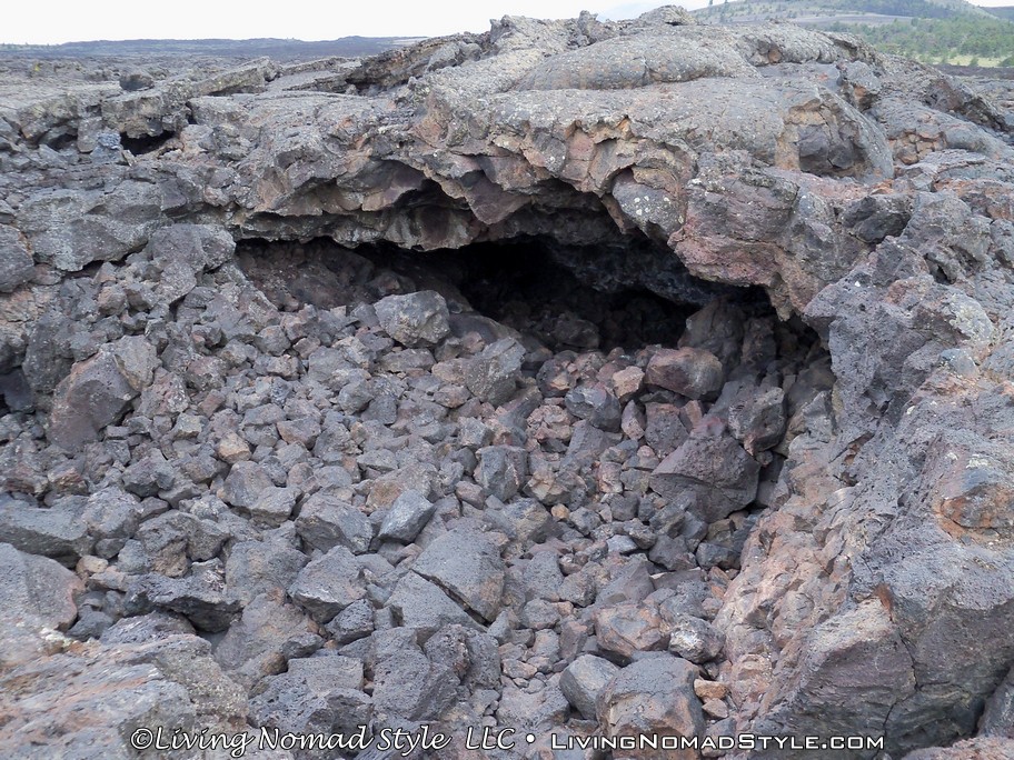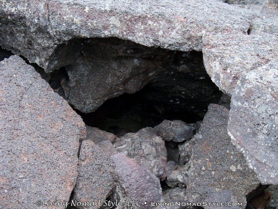 Once we left this area, we got back on the loop and headed to the last stop, which was simply referred to as the Cave Area. From the parking lot all you see is miles and miles of lava fields. There are lava rocks for as far as the eye can see. There is one path called the Caves Trail. It is about a mile long and the ups and downs are not too bad. Along the way you will encounter Dewdrop Cave, Beauty Cave, Boy Scout Cave and Indian Tunnel. The trail is shaped like a Y with Dewdrop Cave being the crux of the Y. We ventured towards Indian Tunnel instead of the other 2 caves.