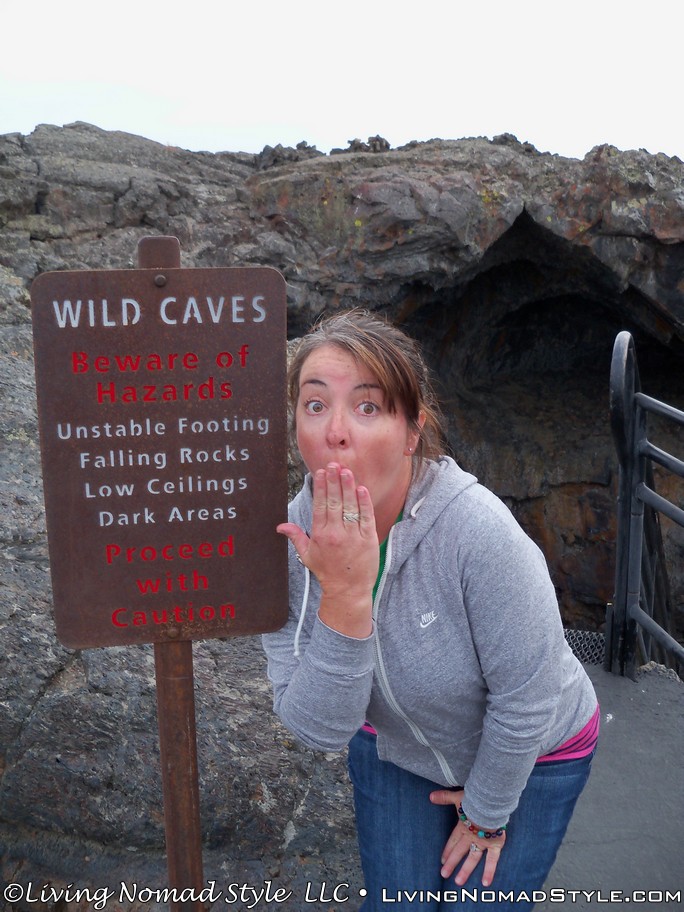 Once you turn onto Craters Loop Road, you will come to the Visitors Center almost immediately. In here you can use the restroom, learn more about the history of the land and get a permit to go into the caves. There are multiple caves located on the park grounds and you can explore them all. Please be advised, the ground is unstable, rocks may fall, some spaces are tight squeezes and you will have to climb on loose rock to enter or exit some of them.
