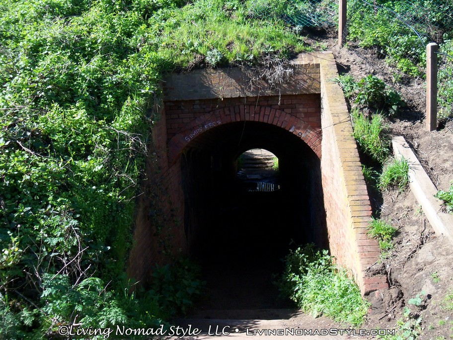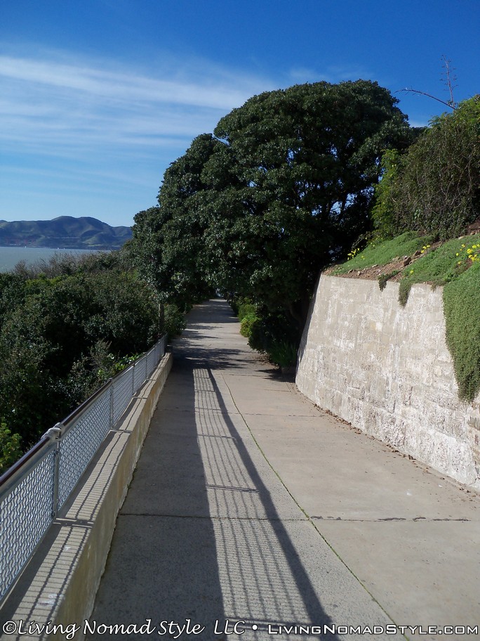 From here we followed a dual foot and biking path up towards the bridge. We took a path less traveled and it brought us by different Batteries (areas of gun powder and weapon storage) that were used to defend the harbor area. We eventually went through a tunnel and came out near the information center. It did afford us a few picture moments to snag great images of the Golden Gate Bridge.