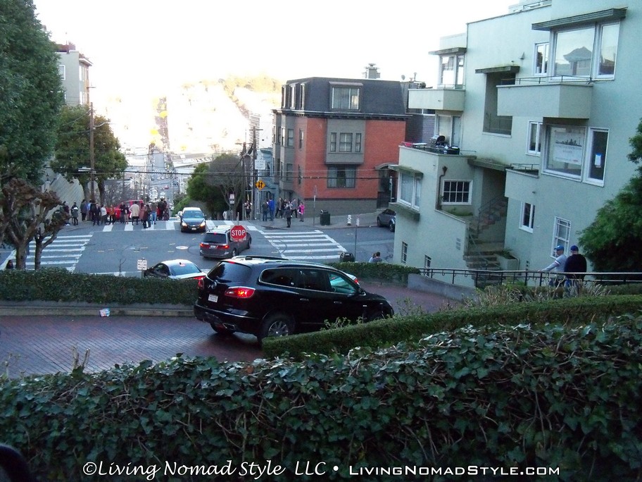 From Japantown we made our way to Lombard Street. To be more specific, we made our way to Lombard Street between Hyde Street and Leavenworth Street. This is an area considered to be on the the crookedest streets in the world. It is at a severe downward angle and encompasses 9, almost U-Turn level turns within one block. We journeyed down it in Ebony II, a Ford Expedition Extended Edition vehicle. Let me just say it was tight maneuvering but very exhilarating.
