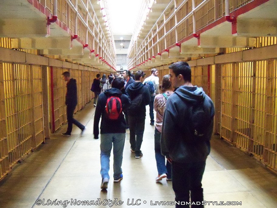We explored and walked all over that island. We saw the cell blocks, where the prisoners who escaped and were never found, slept. We also saw cells for Al Capone, Bumpy Johnson and more. We explored the outside garden area, the solitary confinement, the recreation area and much, much more. Did you know that the kids of guards lived on the island in apartments? Yep! They traveled, by ferry, to San Francisco for school everyday and returned to Alcatraz every night.