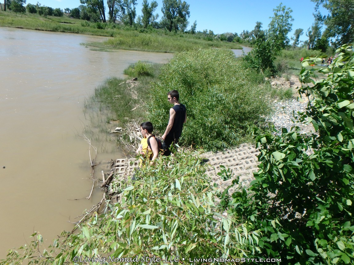 12 Mile Dam is named as such because it is located around mile marker 12 on Highway 59 in Custer County. The dam spans the Tongue River. There is a bathroom out there and some picnic tables. We saw some patches of rock out in the middle of the river where people setup lawn chairs to enjoy the sun and fish. The water is not deep enough to swim for us and we do not having fishing poles, so we left.