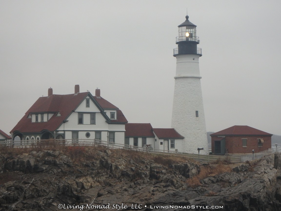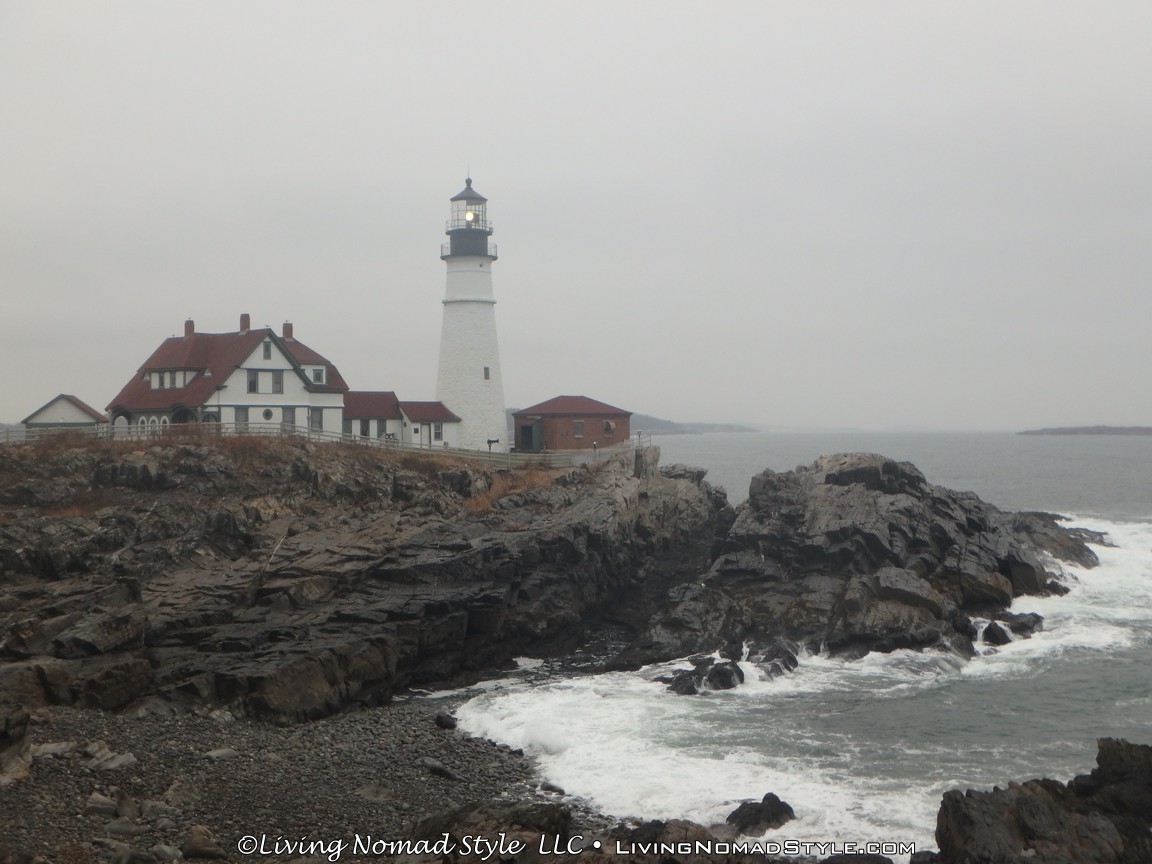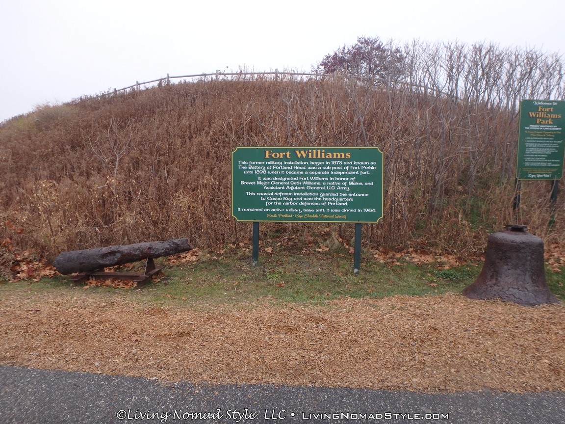 Why did I pick Fort Williams? Glad you asked. It is the site of the Portland Head Lighthouse. This is claimed to be the most photographed lighthouse in the world. It was also the first Federally commissioned lighthouse in the United States. We love lighthouses. We love things that are “the most”. And we love seeing things that are “the first.” So, this place had Nomad written all over it and we had to go. The lighthouse is located at Fort Williams Park; a 90 acre park with remnants of old fortifications, railroad tracks and the Goddard Mansion.