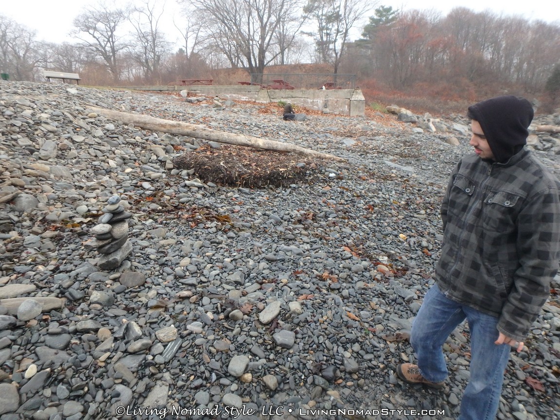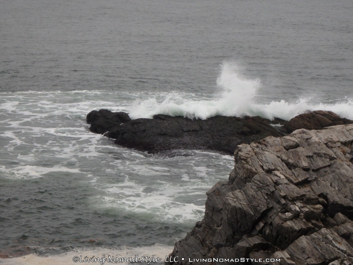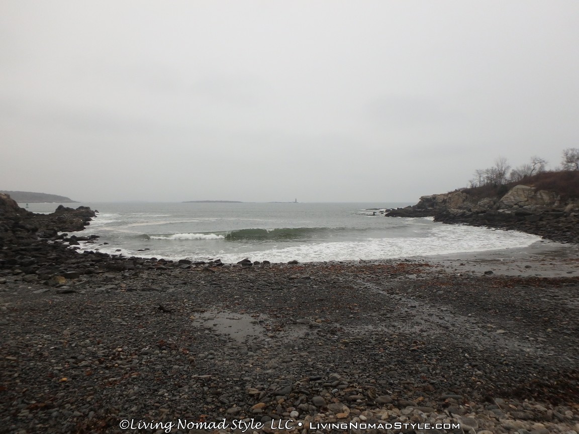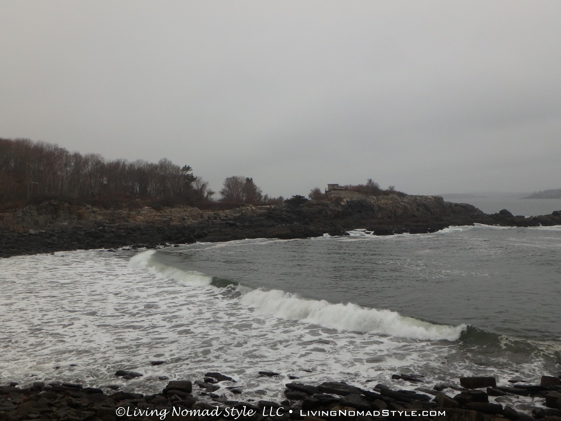 We rolled into the park and it could not have been a more perfect New England setting in the late fall. The waves were crashing up against the rocks, it was cold and misting rain. This caused there to be extensive fog in the bay. So, the lighthouse was cranking its light around for ships to see and they had the foghorn going! I know it may sound silly. But we were so excited. We felt like we were in a live postcard.