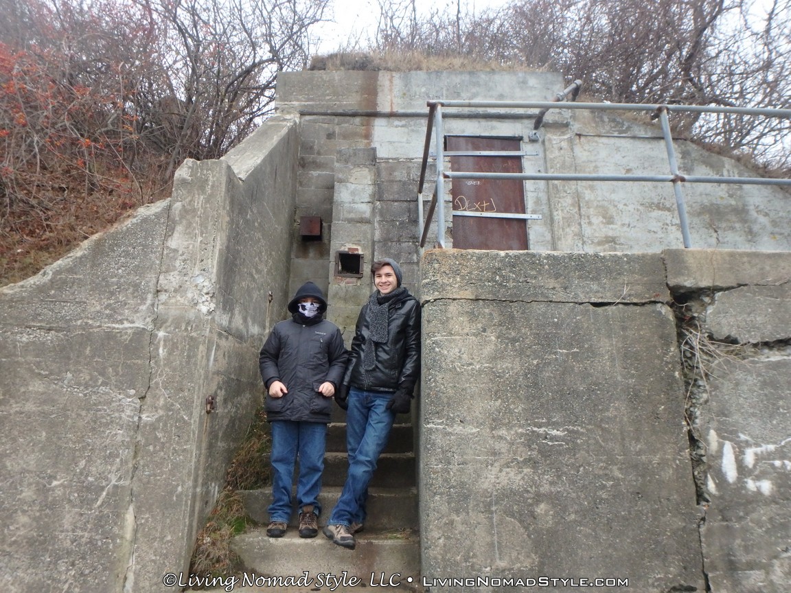 We left the door in the hill and ventured to the other side of the cove. This is where remnants of buildings were that was called Battery Erasmus Keyes. There were three buildings in total. One was the commander’s station, another was to provide illumination at night and the third was the control station and store room. This was actually used up through Word War II. One thing the boys and I found cool was the tunnels into the hill that ran under the upper buildings and behind the store rooms. Special Note – If you are afraid of the dark or tight spaces then DO NOT go into these tunnels.