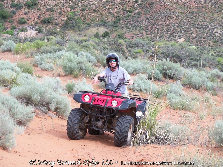 Last weekend The Nomads got access to an ATV and we went four wheeling. One thing about Southern Utah, there are lots of public lands that you can use. And you can almost throw a rock in any direction to hit a trail you can take an ATV on or traverse by foot.
