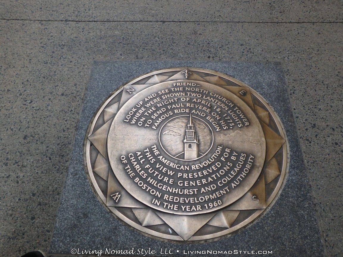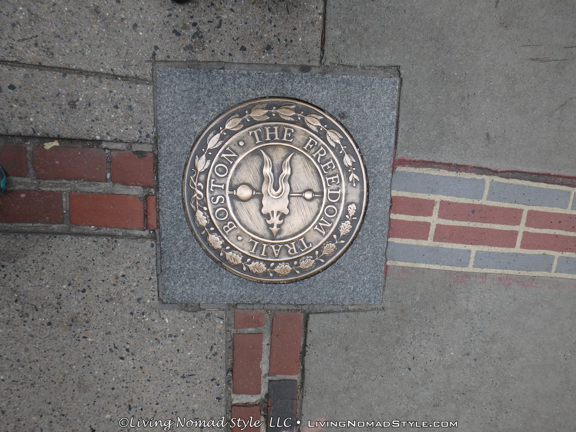 The Boston Freedom Trail is a 2.5 mile, about 4 kilometer, path that runs through Downtown, Boston. It passes by at least 16 officially recognized places that are meaningful to the History of The United States, as well as many other unofficial places. The whole trail has a brick lined path that runs through sidewalks so that you can visually follow it. And, there are some signs posted along the streets and buildings as well. When you reach an officially recognized, historically significant place, you will find a big circular marker on the ground that says “Boston • The Freedom Trail” on it.