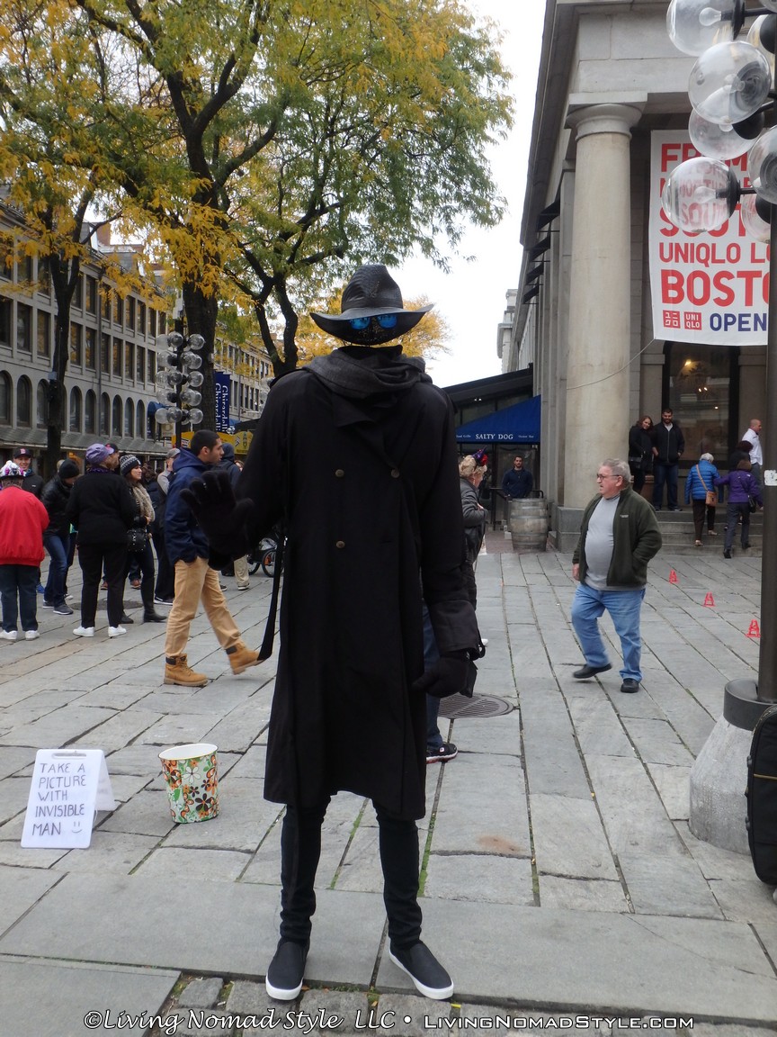 Oh, and by Faneuil Hall, we saw many performers. It is an enjoyable area. We stopped and watched this one dance group, The Breeze Team, for quite a while. Tip to you shy people, do not stand in the front row. They will drag you into the show. But, it is very entertaining. We walked around to the other side and saw some comedic performers. We even saw the Invisible Man. Well…we saw his clothes walking around. Hahaha!