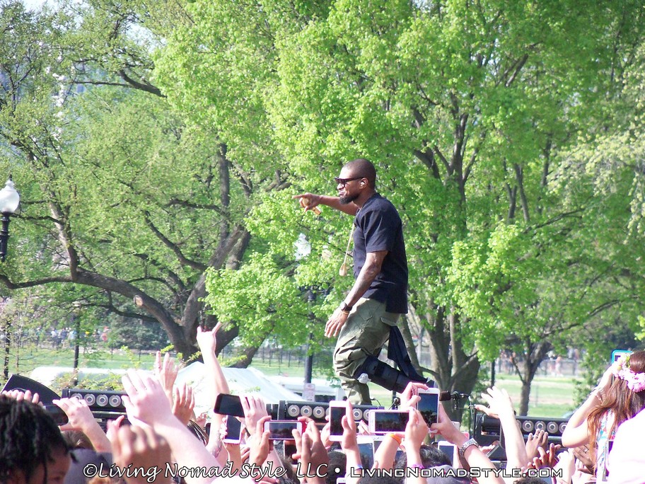 In a short while, the next performer came on. It was Usher. To our surprise, his foot was in a cast of some sort and he had one crutch. But, he still performed hobbling around on one foot! Usher’s performance was still amazing and he got much respect for performing while partially disabled. The rapper and actor, Common, came out during Usher’s performance and performed as well. He jumped out into the crowd and got the audience going. I had to go in for a closer look so I could grab some better pictures. Mission accomplished.