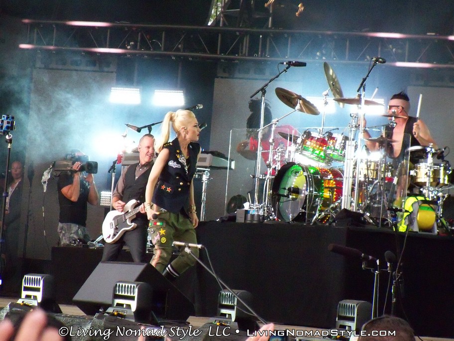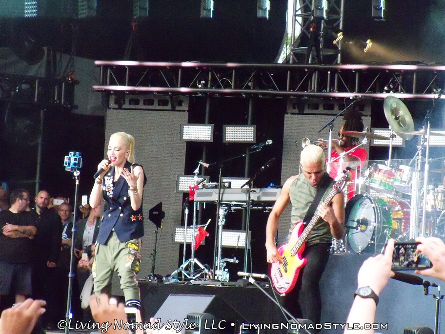 About another 30 minutes passed and then Mama Nomad lost her mind! Let me give some background here. As a teenager, she loved this group, especially the singer. She wanted to see them in concert, but when the lead singer began to sing some solo songs, the group stopped putting out as many albums and consequently less concerts. Mama Nomad was disappointed, to put it mildly. She thought that she was never going to be able to see them in concert. That is…until…today. For the first time since Mama Nomad was a teenager, the group was performing in an area where she was. So, when Mama Nomad saw the group, No Doubt with Gwen Stefani, hit the stage, being excited was an understatement! I saw the teenager come back to life in her as she yelled and cheered. It was great. I, again, made my way closer to the stage to grab some better quality pics. Mission accomplished.