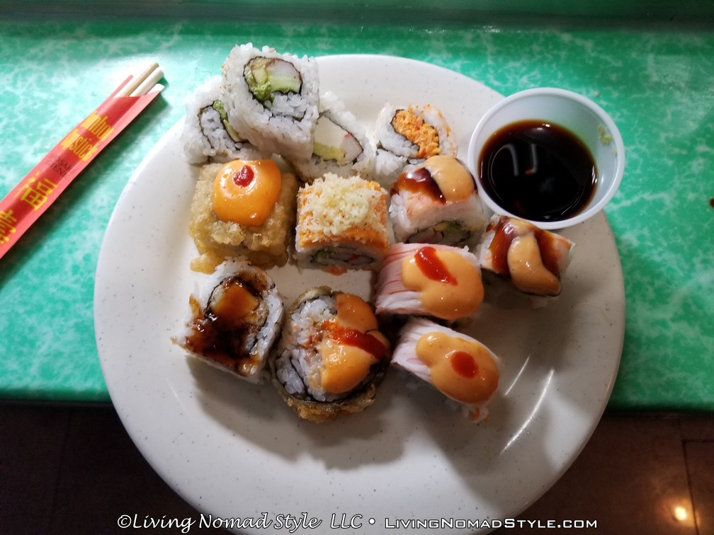 After the movie we adjourned to the house for a bit. Then, hunger sat in and decided to head to our final destination. Dinner. Place of choice? Fuji Sushi and Seafood Buffet. That’s right. All you can eat sushi. Bonus surprise…they had made to order hibachi. I think we all devoured 3 to 4 plates each. Worth it!