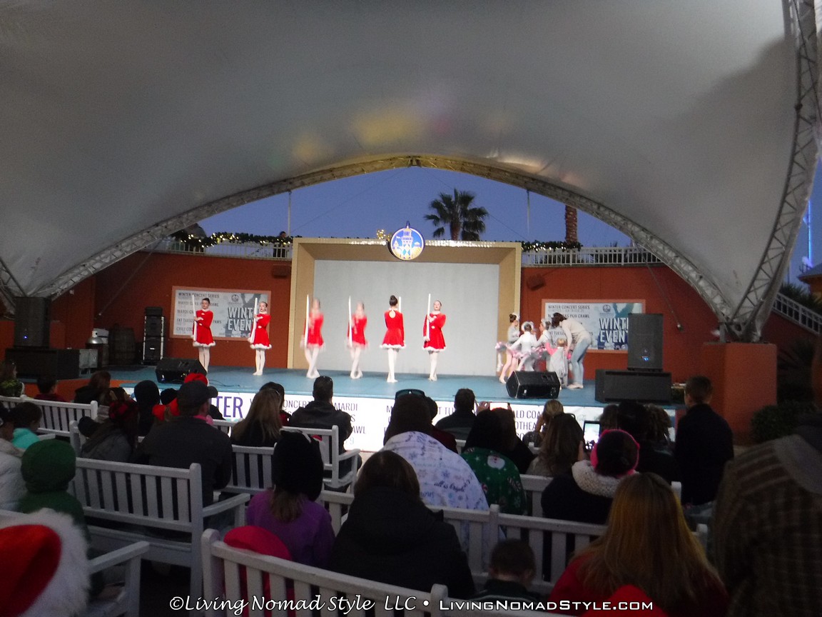We waited but no performers showed up. After 10 minutes or so, we figured that they were not coming on until later. So, I scouted out some Hot Cocoa and brought it back. Before you ask, yes, it was chilly. It does get cool in the panhandle. And, to Floridians, it gets cold, like break out heavy jackets and beanie hats cold. Then we see someone from up north walk by in shorts, flip-flops and a polo shirt. It is interesting to see all of the different regions and cultures mix in one place like this.