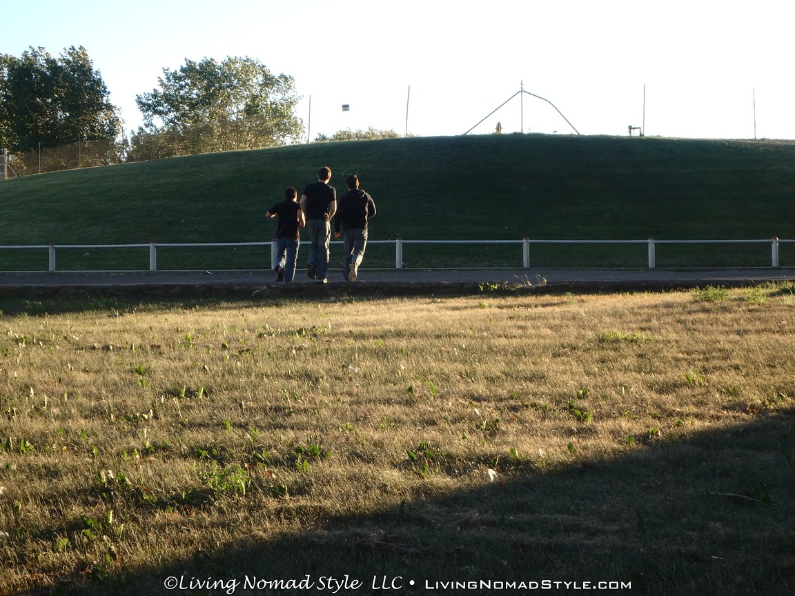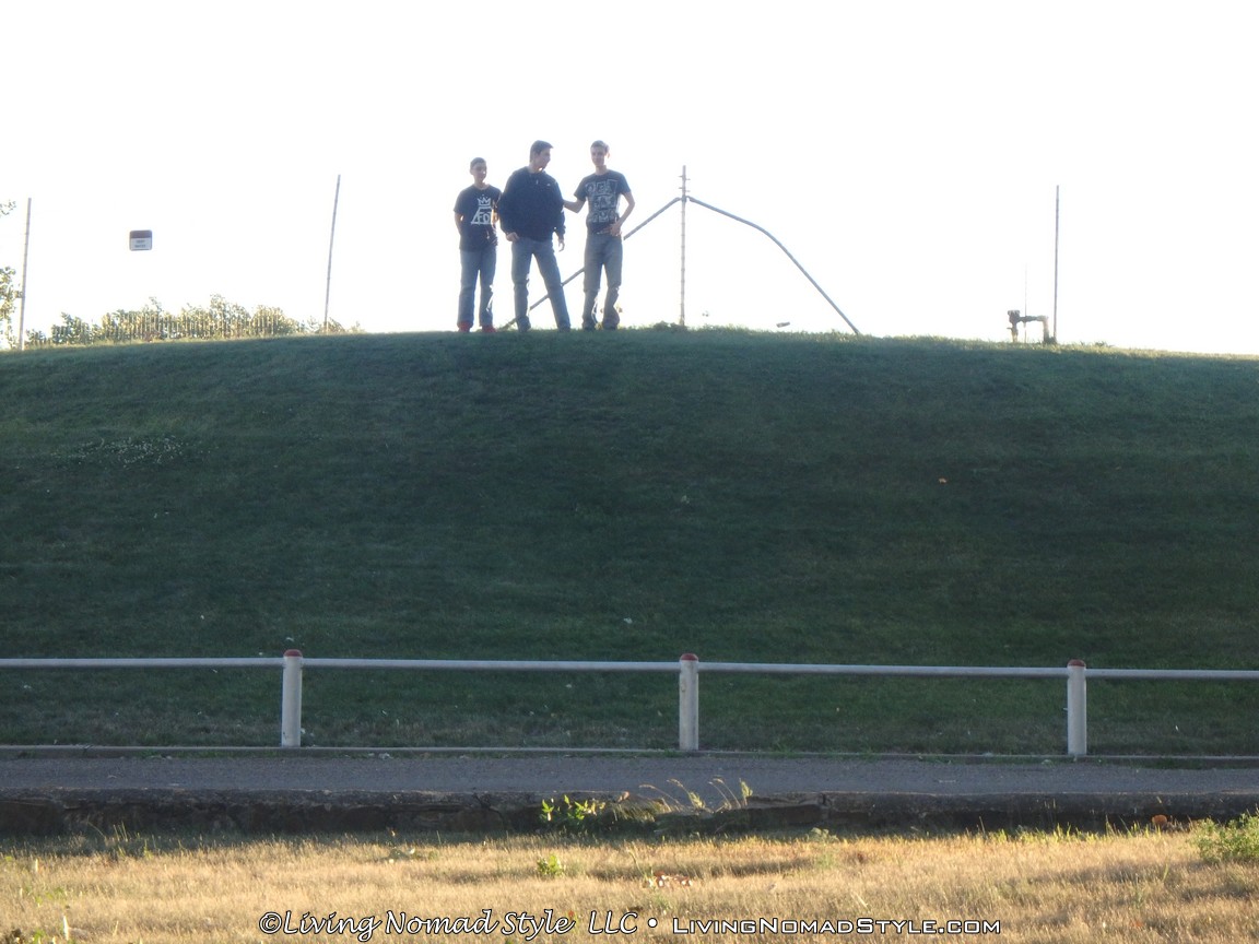 By this time, our boys had wandered off to a steep grassy hill. Why? What else…to roll down it racing each other, do somersaults down it and other genuinely rough and tumble boy stuff.