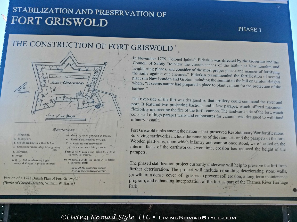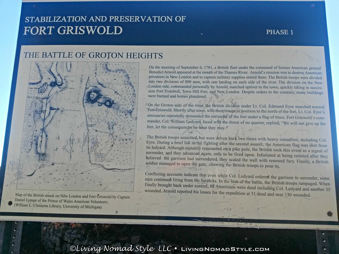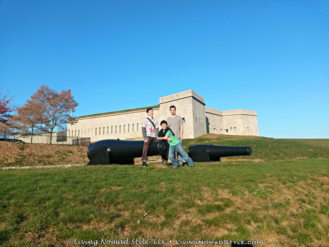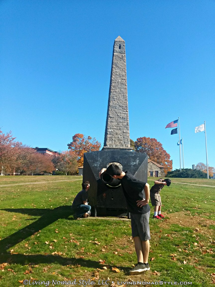 We went to Groton, CT to visit Fort Griswold Battlefield State Park. Fort Griswold was captured by the British Forces (led by Benedict Arnold) in Sept 1861. Of the 165 defenders stationed there, the massacre would kill 88 of them. As well as the fort, there is the Groton Monument dedicated to the defenders who fell during the battle, the Monument Museum, and the Ebenezer Avery House that was used to shelter the wounded after battle. Even though the day was beautiful, it is still considered off season here, and that means some places will be closed down after Labor Day or Columbus Day; like museums, and visitor centers. The boys, and I enjoyed exploring around Fort Griswold though. It is an extremely well preserved battlefield, and a nice place to spend some time walking in history.