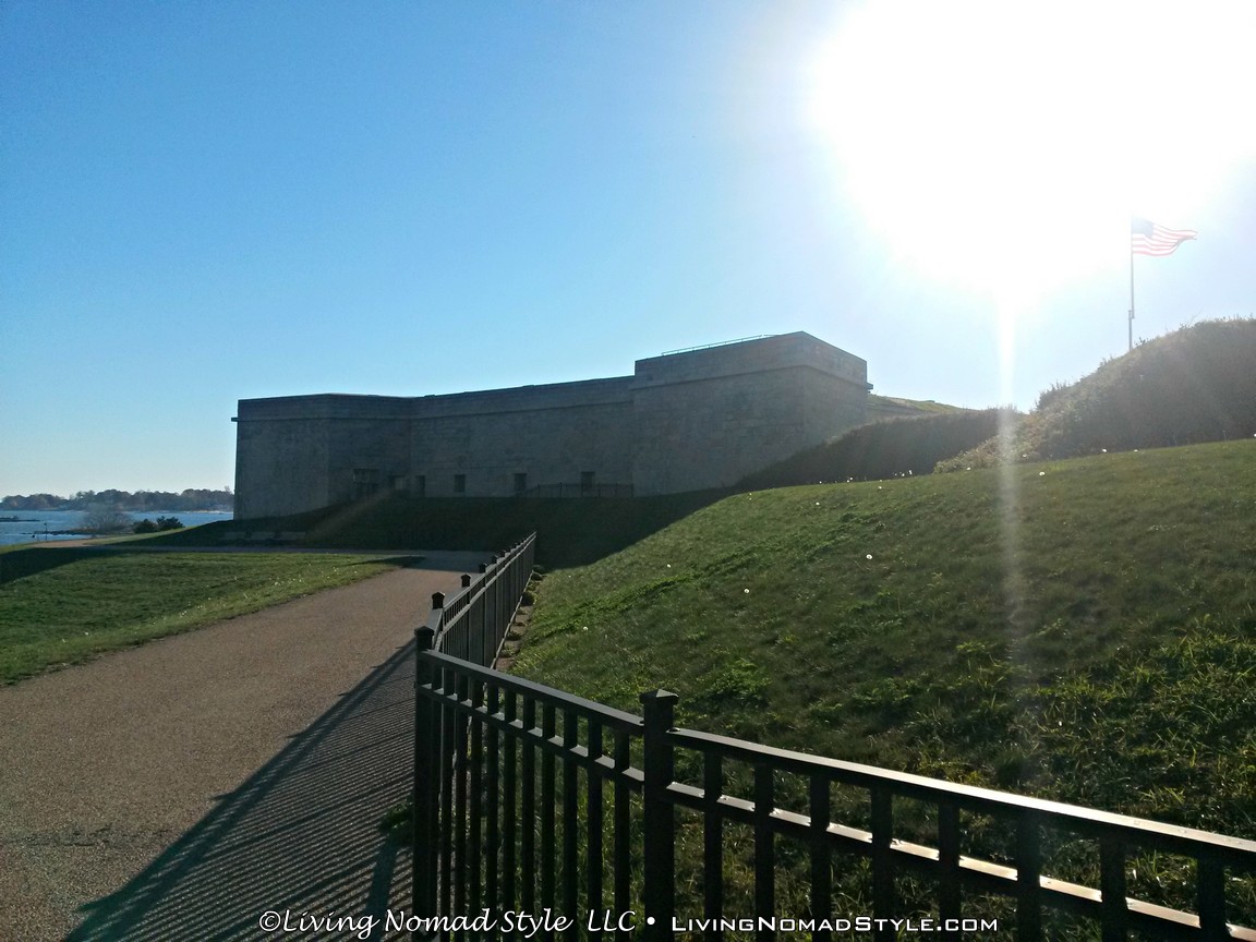 Our last major stop was New London, CT to Fort Trumbull State Park. Sadly, this one was all locked up for the season, too. We were able to walk around the outside, and read the information that was available, but touring the inside would have been really cool. Fort Trumbull has some pretty interesting history with both the Navy, and Coast Guard; which we were able to see boats in the water that belonged to both. That was neat. All in all, we had fun exploring around the fort, and walking the boardwalk. Having the place pretty much to ourselves, the boys really got into some parkour with all of the poles, benches, steps, etc. The outing quickly became a nice mixture of history, and physical education.
